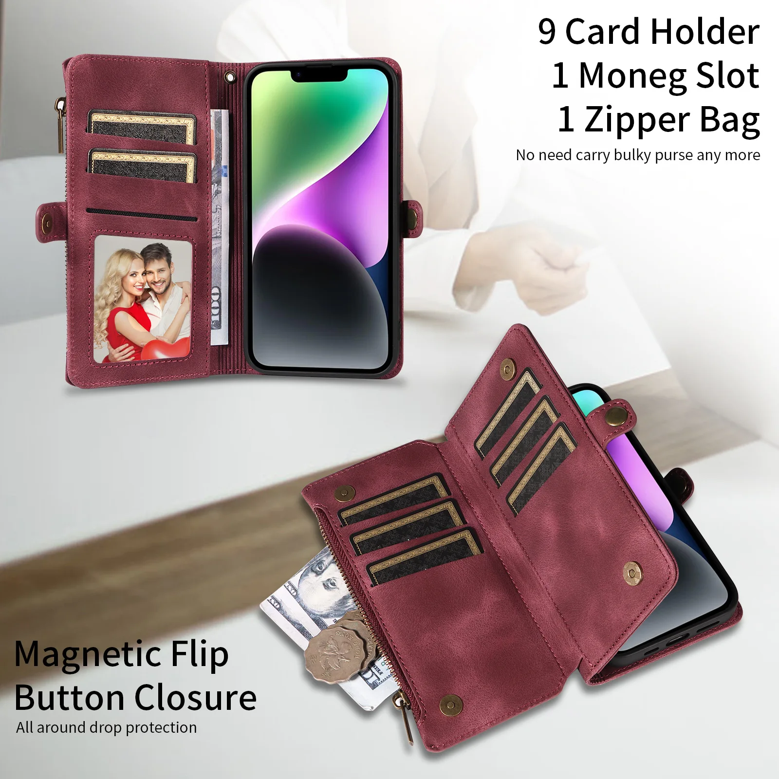 Feature 1: Zipper Wallet / flip case with 9 card slots + 1 cash slot+Zipper Pocket