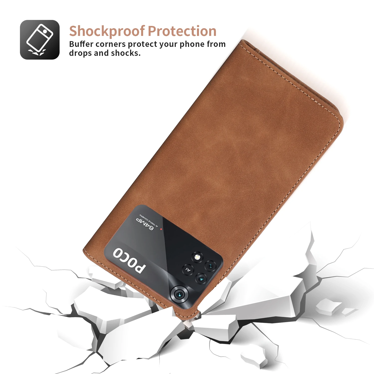 Color: Blue, Material: Wood - Flip Leather Case For Xiaomi Mi 13 12T 11T 10T 11 12 Lite Pro 5G Poco F5 X5 Pro M6 M5S M4 F4 F3 X3 X4 GT Magnet Wallet Cover