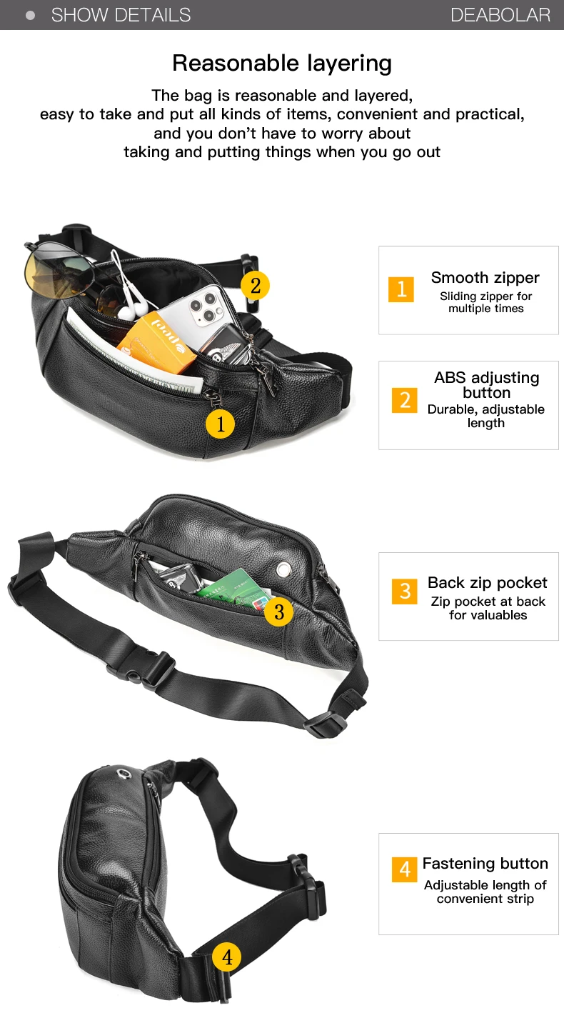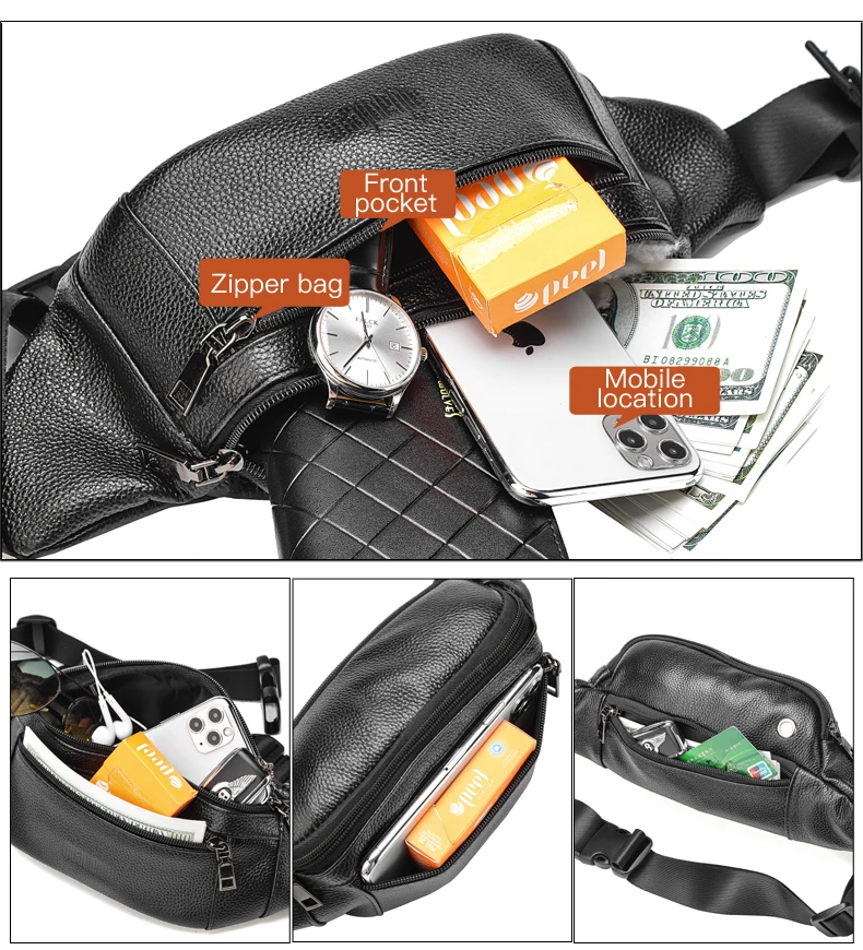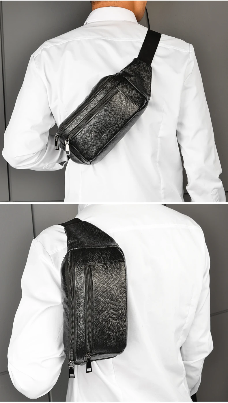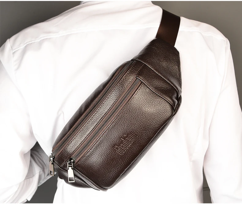 Color: Blue - Men's Genuine Leather Chest Bags Crossbody Bag Luxury Design Durable Pockets Chest Bag Business Men's Handbag Shoulder Bag