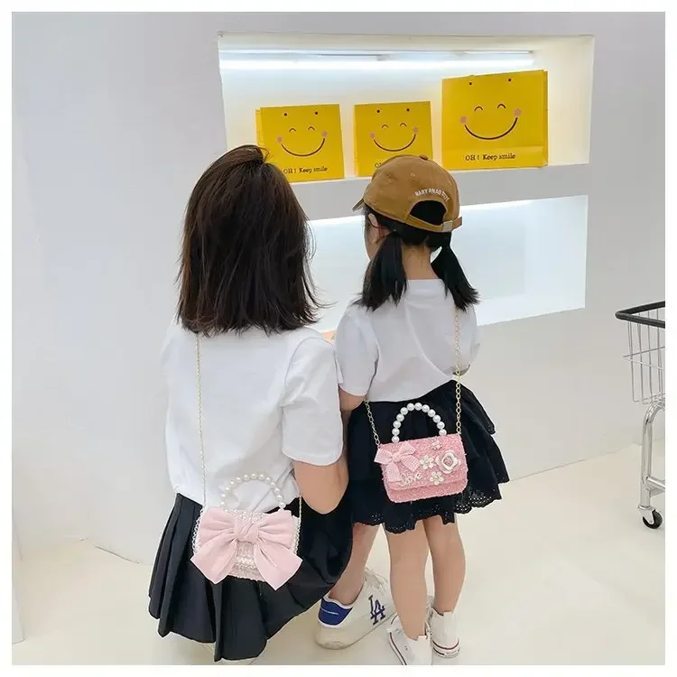New Children's Fashion Little Fragrant Wind Elsa Princess Bag Little Girl Pearl Handheld Crossbody Bag