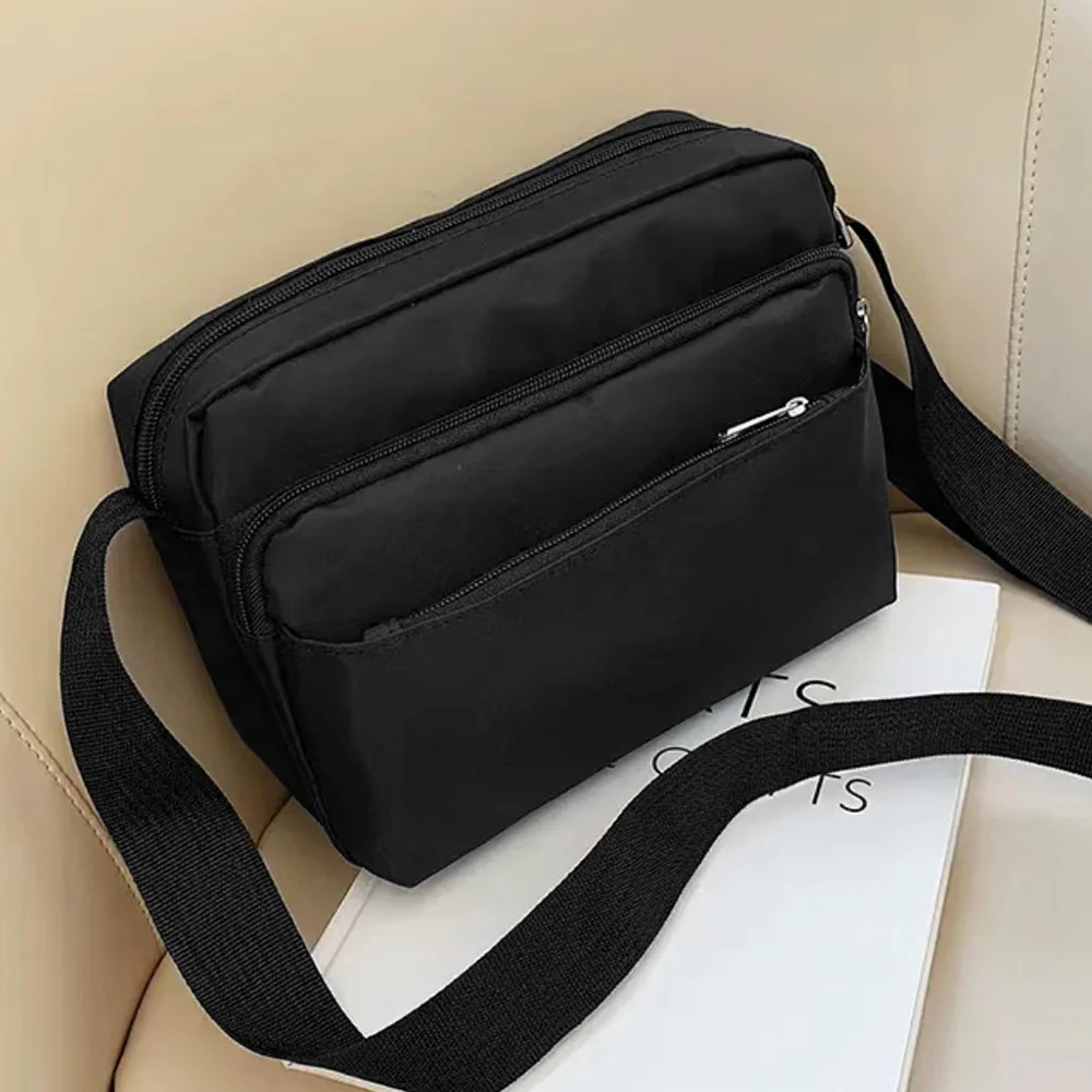 Color: Blue - New Fashion Multi-layer Travel Leisure Simple Storage Bag Black Gold Letter Series Printing Pattern One Shoulder Crossbody Bag