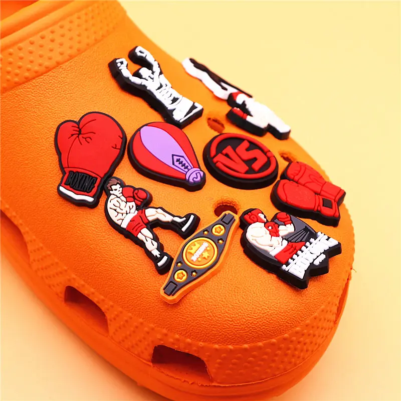 Color: Blue, Ships From: CHINA - 1Pcs Boxing Champion Style Sandals Shoe Charms Accessories PVC MMA VS One Clogs Pins Badges Shoe Clips Buckle Fit Kids