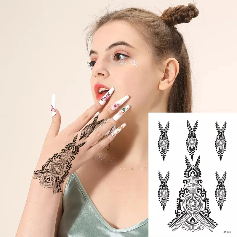 Color: Blue, Ships From: CHINA - Black Henna Temporary Tattoos for Women Lace Flower Mehndi Sticker for Hand Fake Henna Tattoo Sticker Body Art Hena Tatoo
