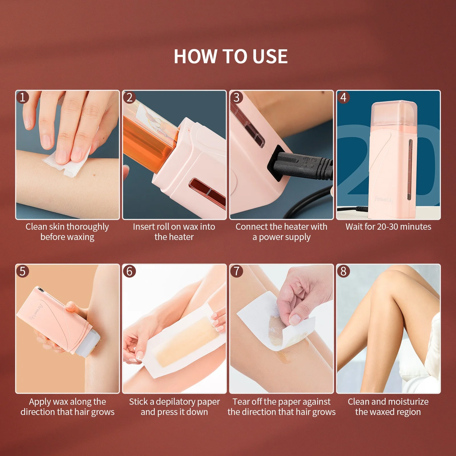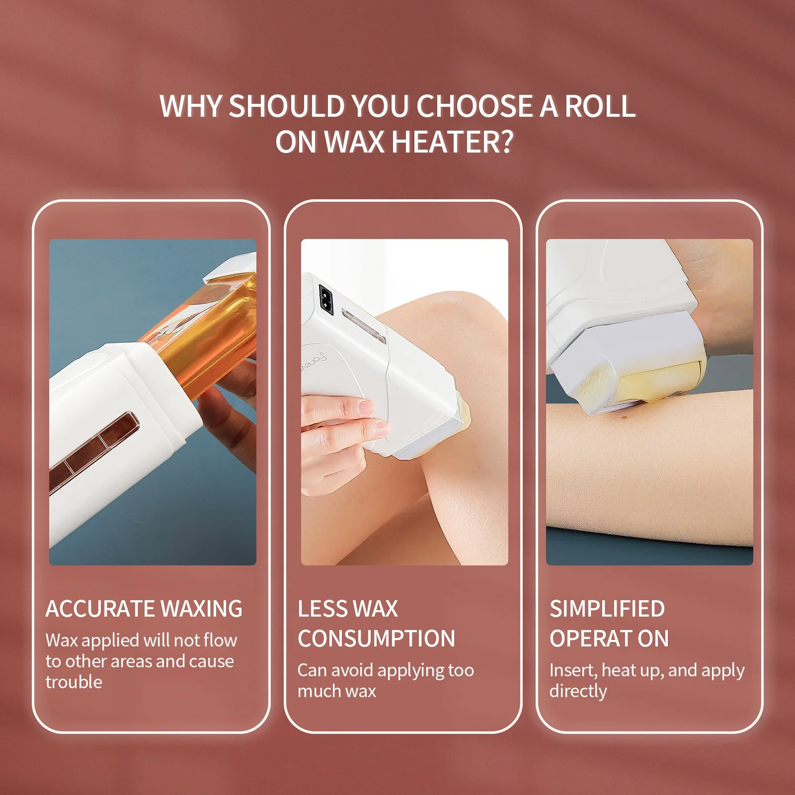 1.Simplified Operation. Specially designed to melt roll on wax-a kind of wax that's ultra-easy to use. Simply insert the wax into this machine, and then it can be directly used for waxing.