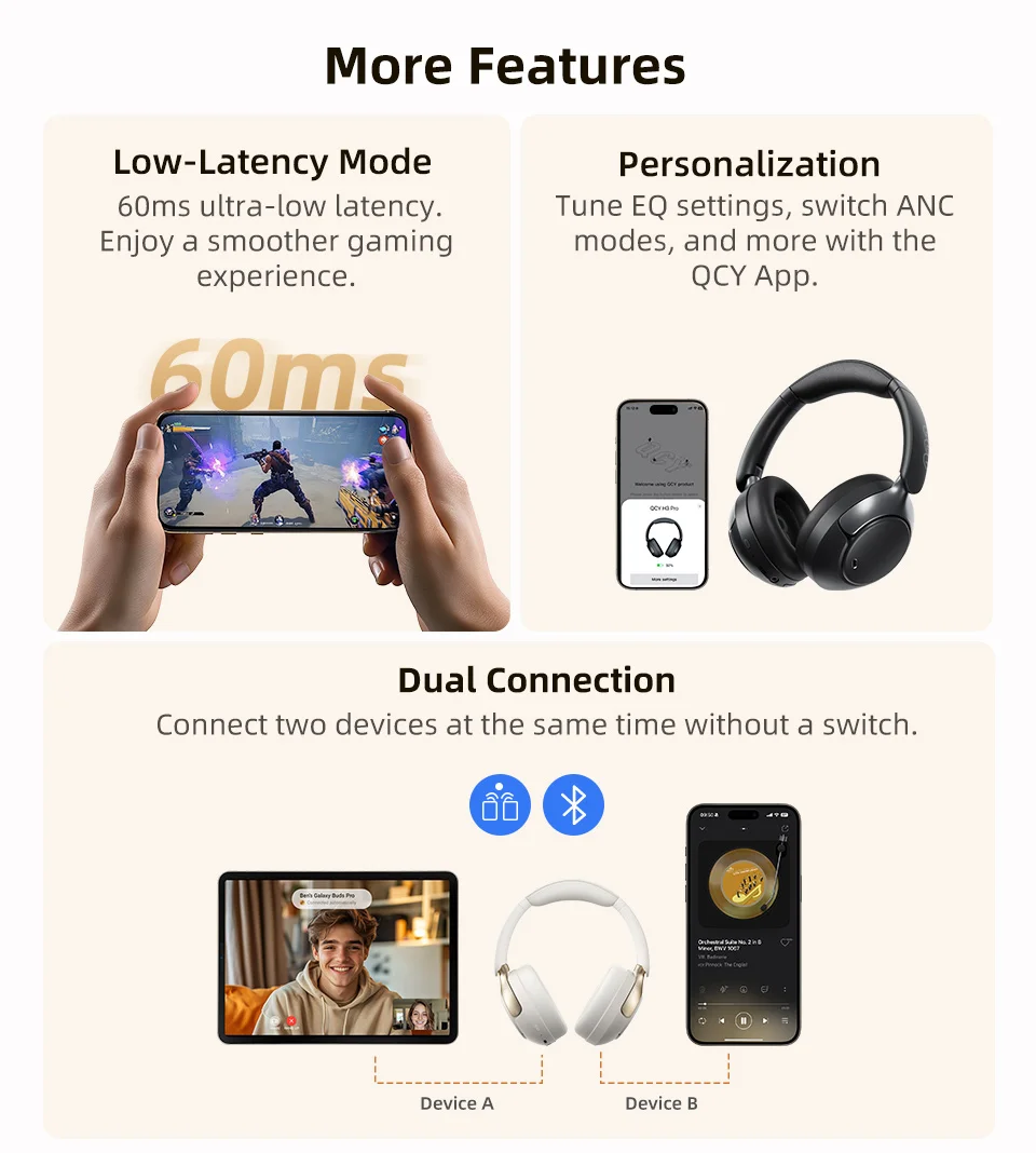 h3 pro qcy anc: dual connection headphones