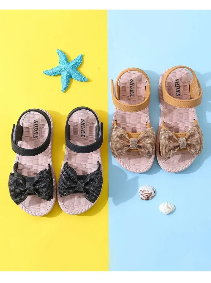 Color: Blue, Shoe Size: 2 - Girls Sandals 2024 Summer Princess Children Sandals Bow Tie Girl Shoes Fashion Casual Non Slip Kids Beach Shoes