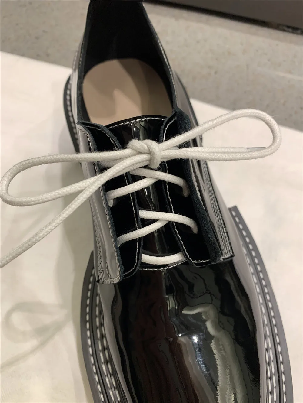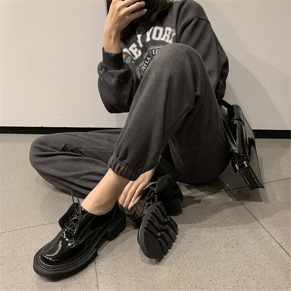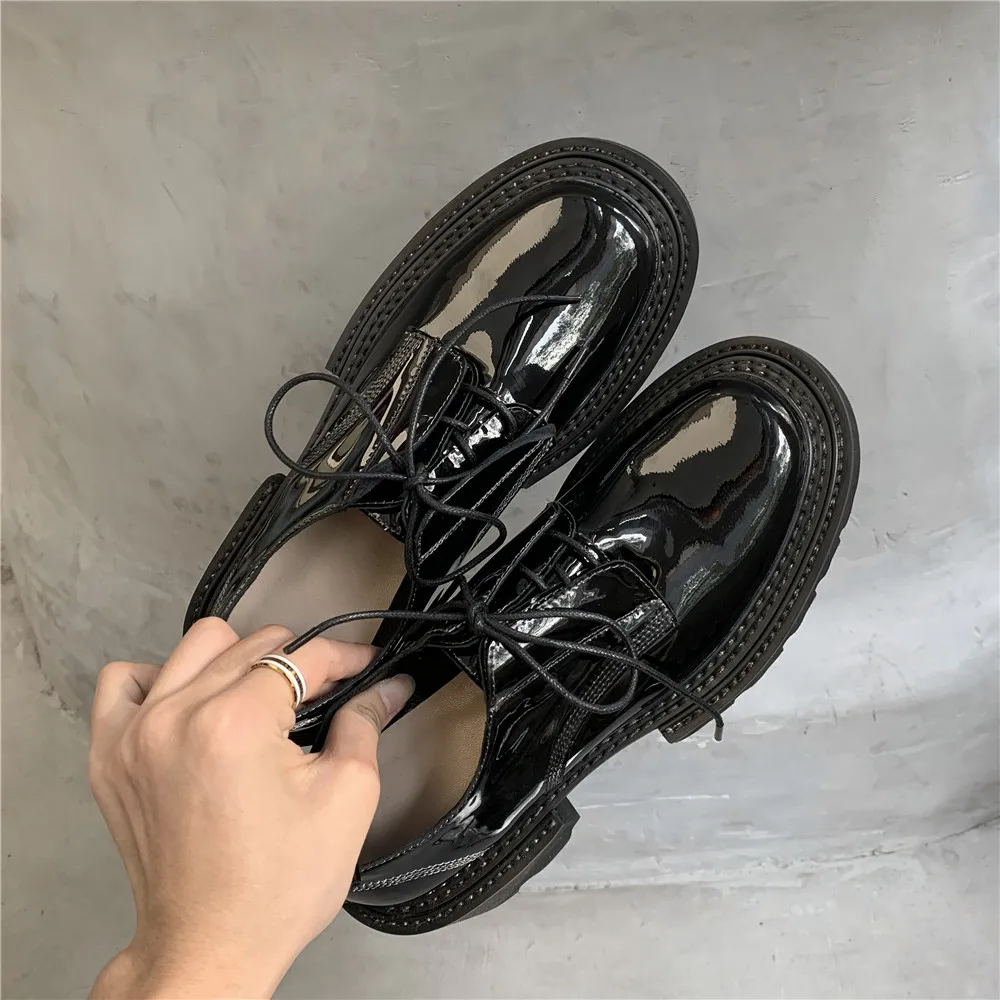 MILI-MIYA New Arrival Thick Heels Women Cow Patent Leather Pumps Lace Up Round Toe Fashion Street Casual Shoes Size 34-42 For Ladies