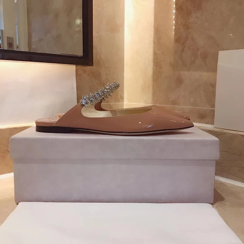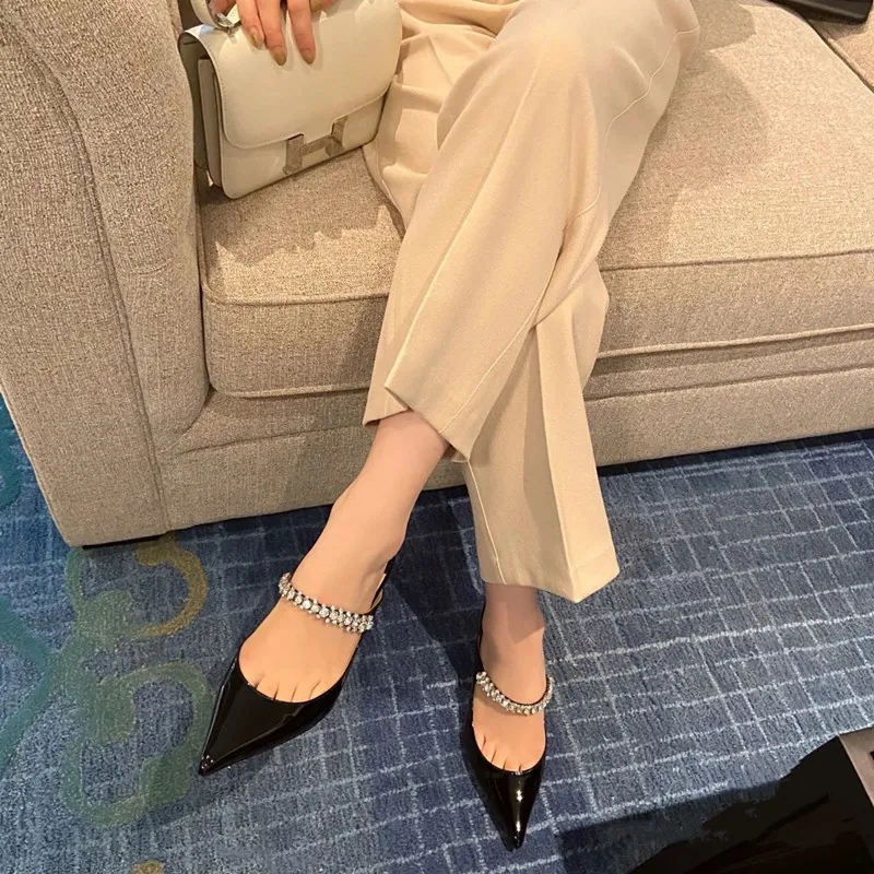 Color: Blue, Shoe Size: 36, Ships From: CHINA - Elegant Leather Mules Pointed Toe Stylish Rhinestone Embellished High Heel Sandals Sophisticated Party Evening Shoes Footwear