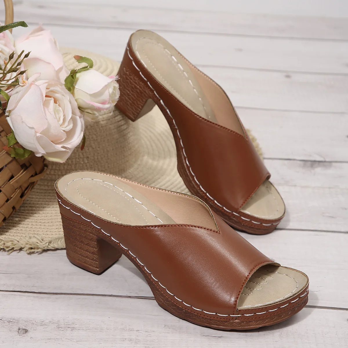 Color: Blue, Shoe Size: 39 - Women's Open-Toe High-Heel Slippers Summer New Fashion Outdoor Wear Slip-On Shoes 36-43 Sizes Polyurethane Upper Cushioning