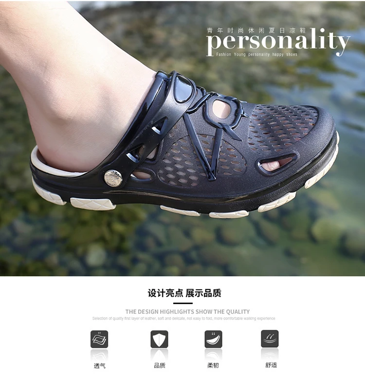 Color: Blue, Shoe Size: 42 - MAEDEF Fashion Men Slippers Summer Waterproof Beach Slippers Hot Sale Casual House Bathroom Slides Non Slip Outdoor Men's Shoes
