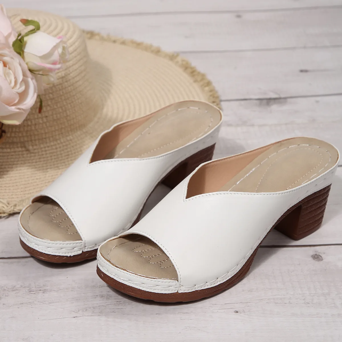 Color: Blue, Shoe Size: 42 - Women's Open-Toe High-Heel Slippers Summer New Fashion Outdoor Wear Slip-On Shoes 36-43 Sizes Polyurethane Upper Cushioning