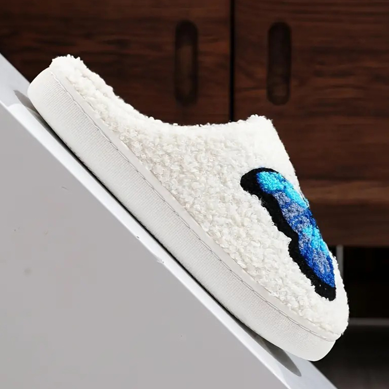 Color: Blue, Shoe Size: 44-45 - Lucyever Butterfly Embroidery Plush Woman Slippers Non Slip Soft Home Slides Shoes Women Winter Comfy Warm Cotton Shoes Female