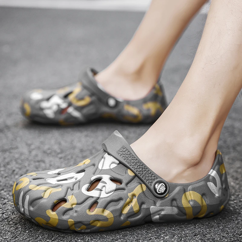 Color: Blue, Shoe Size: 46 - Men Summer Slippers Thick Sole Mens Clogs Sandals Hollow Breathable Flip Flops Sandals Shoes Fashion Beach Slippers