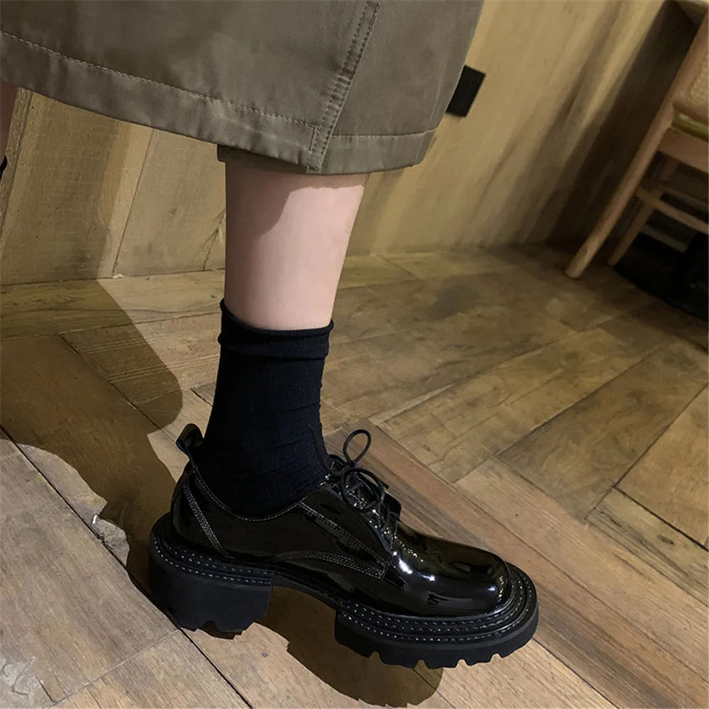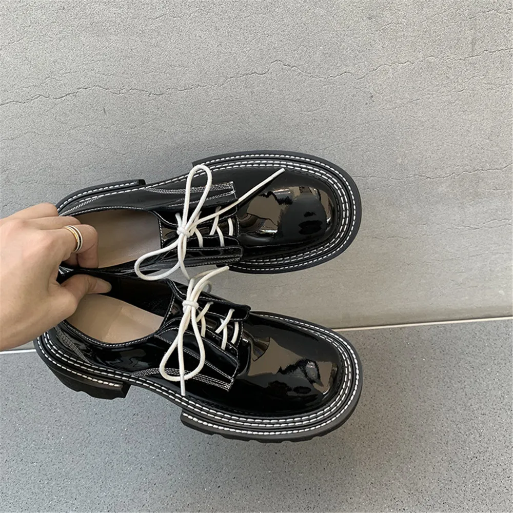 MILI-MIYA New Arrival Thick Heels Women Cow Patent Leather Pumps Lace Up Round Toe Fashion Street Casual Shoes Size 34-42 For Ladies