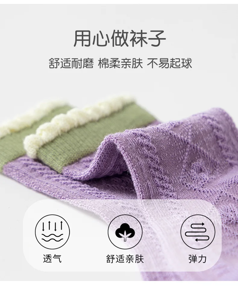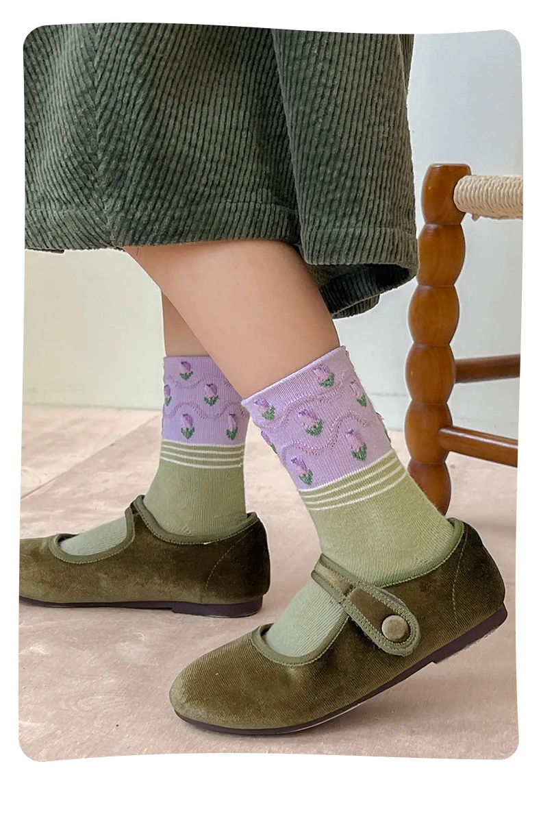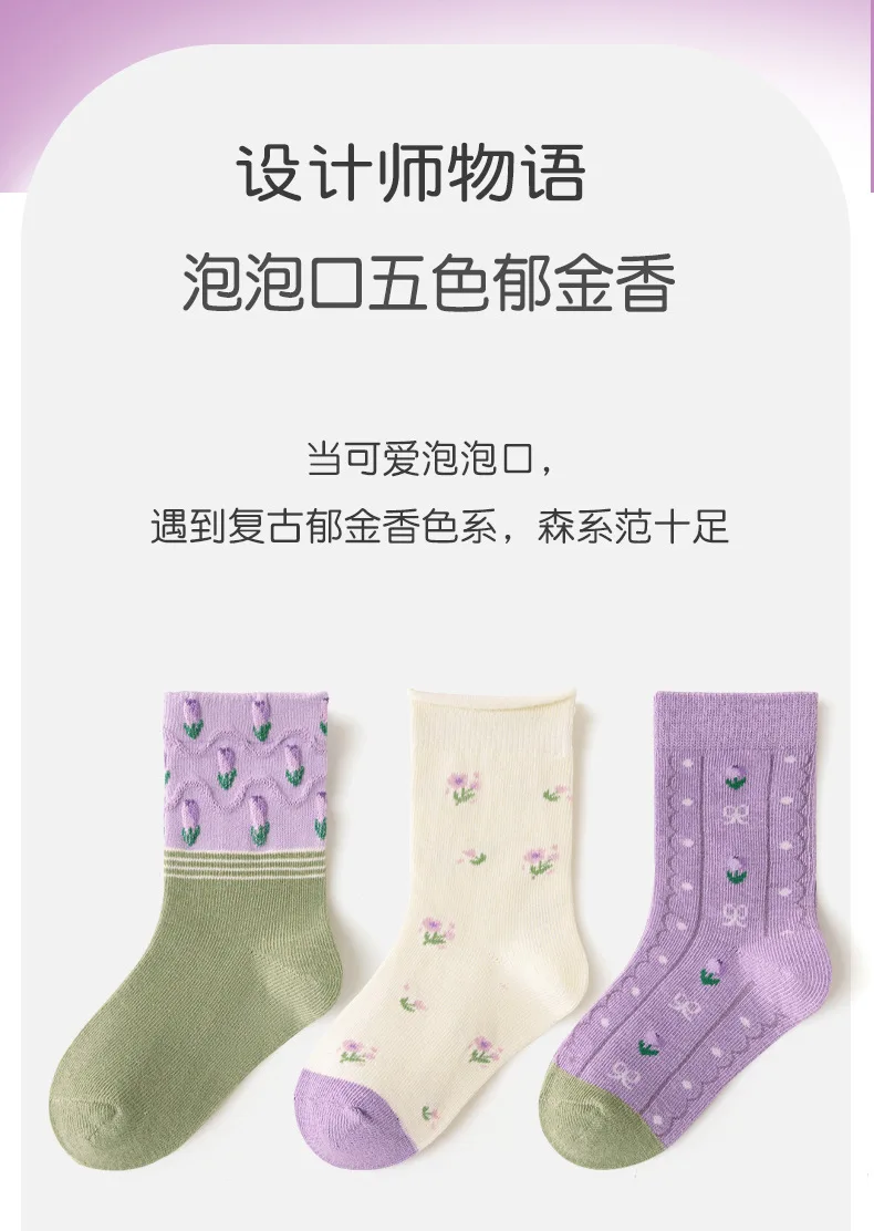 Color: Blue, Size: 2-3T - 5 pairs/lot Children's Socks Autumn Socks Girls Sweet Purple Floral Pattern Mid Calf Socks Baby Infant Cotton Socks