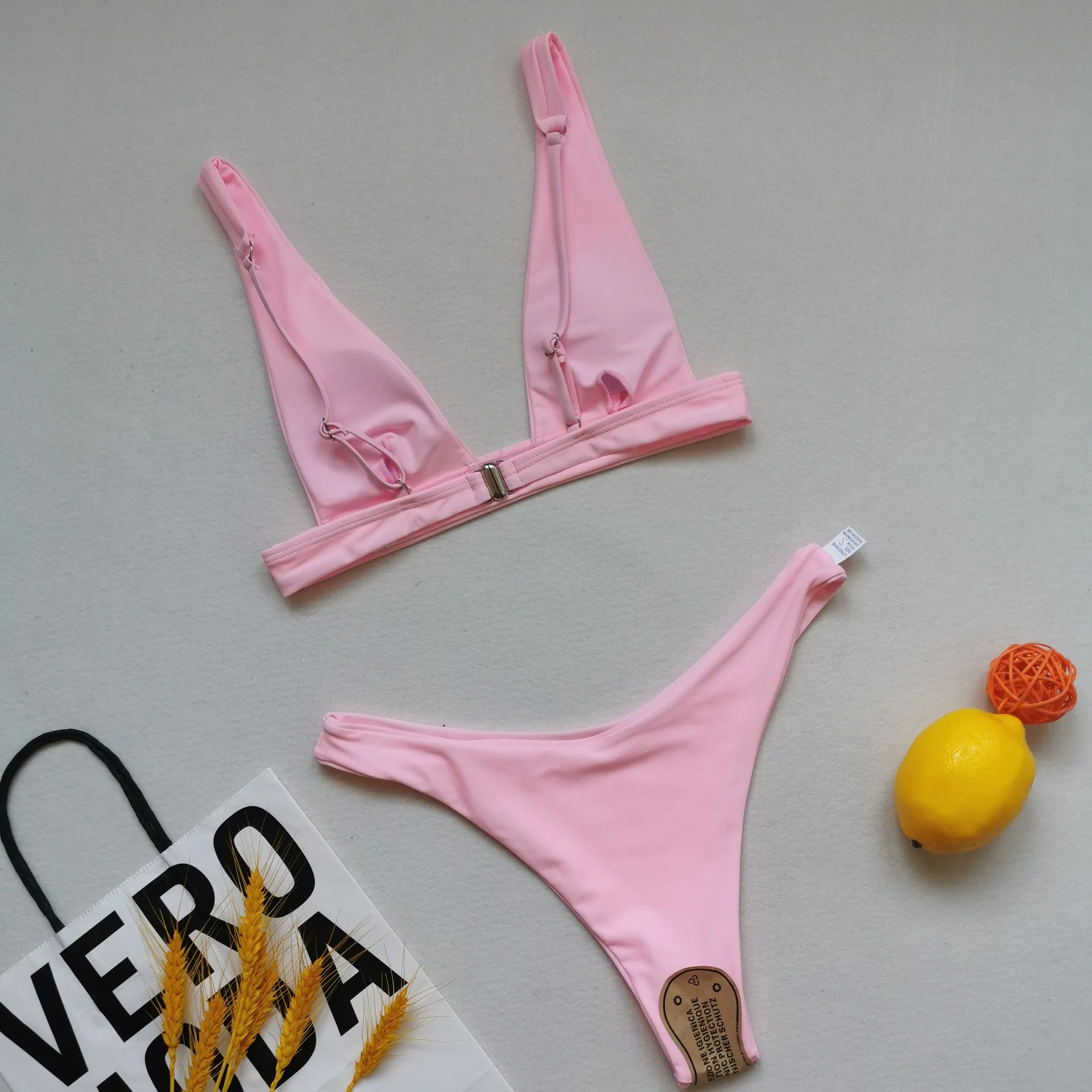 Color: Blue, Size: M - 2023 New Sexy Solid Bikini Women V-neck Swimwear Two Pieces Swimsuit Female Low Waist Bikini Set Brazilian Bathing Suit Bathers