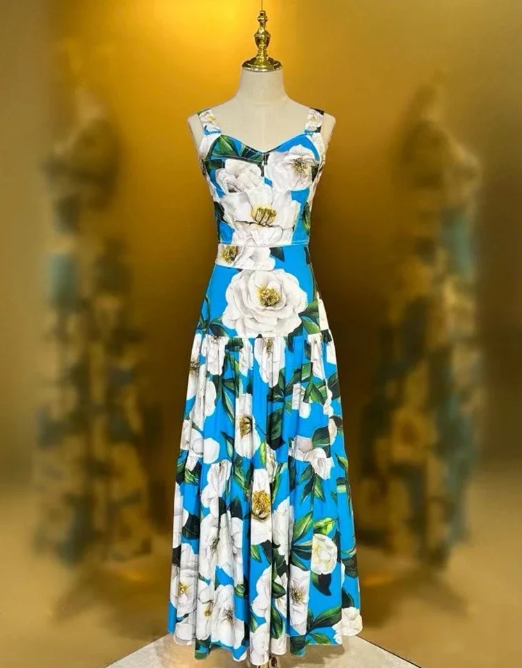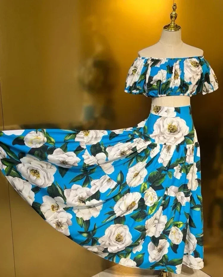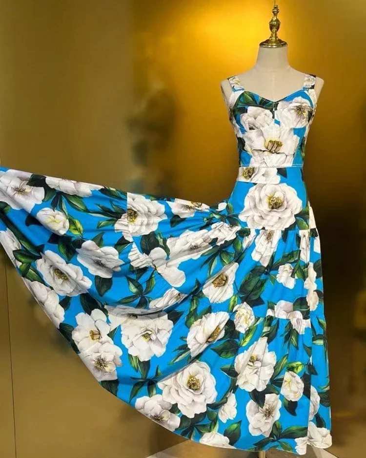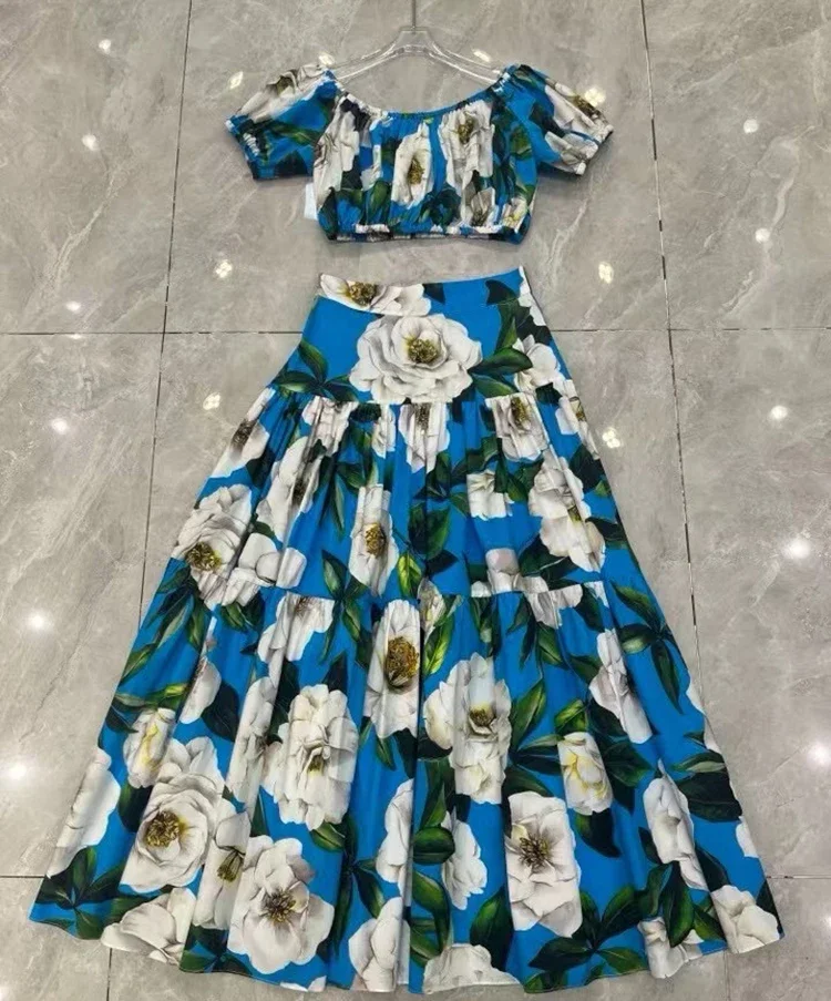 Color: Blue, Size: M, Ships From: CN - Gedivoen New Style Casual Women's Suit Sweetheart Neck Spaghetti Strap Backless Top+Fashion Half skirt Cotton Print 2-piece set