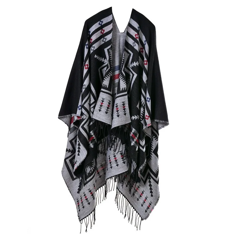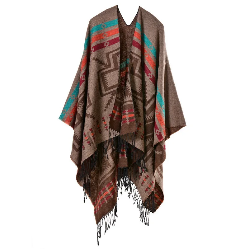 Color: Blue, Size: One Size, Ships From: CHINA - European American Popular Tassel Thickened Cashmere Like National Style Travel Fork Shawl Scarf in autumn Ponchos Capes