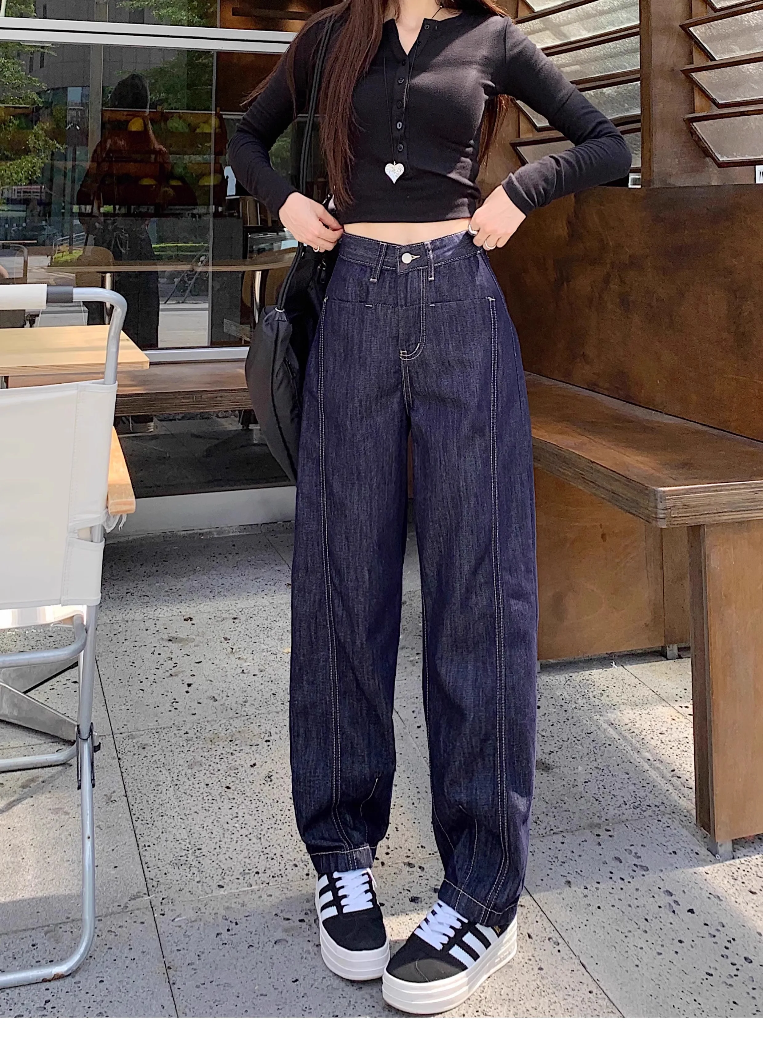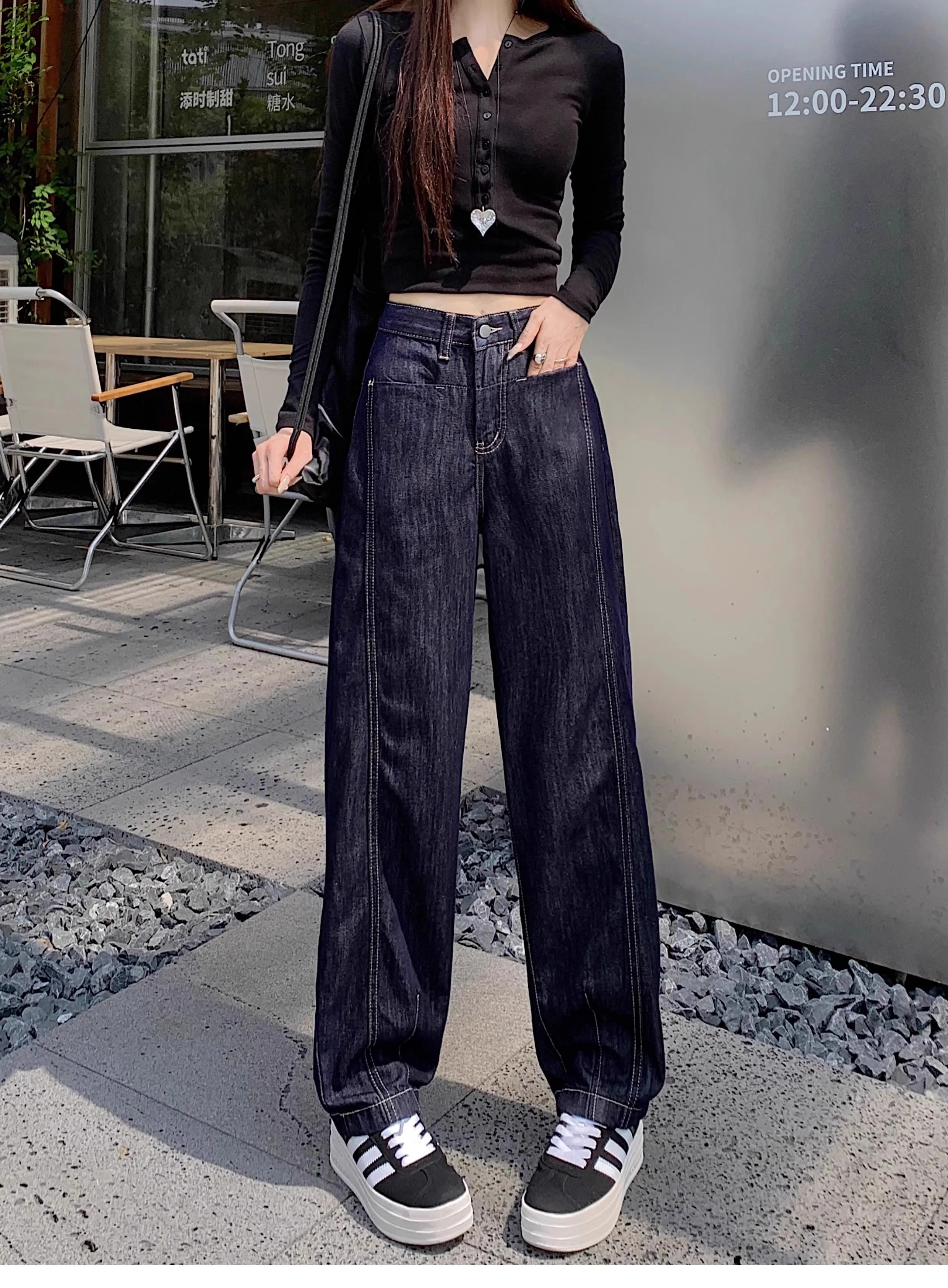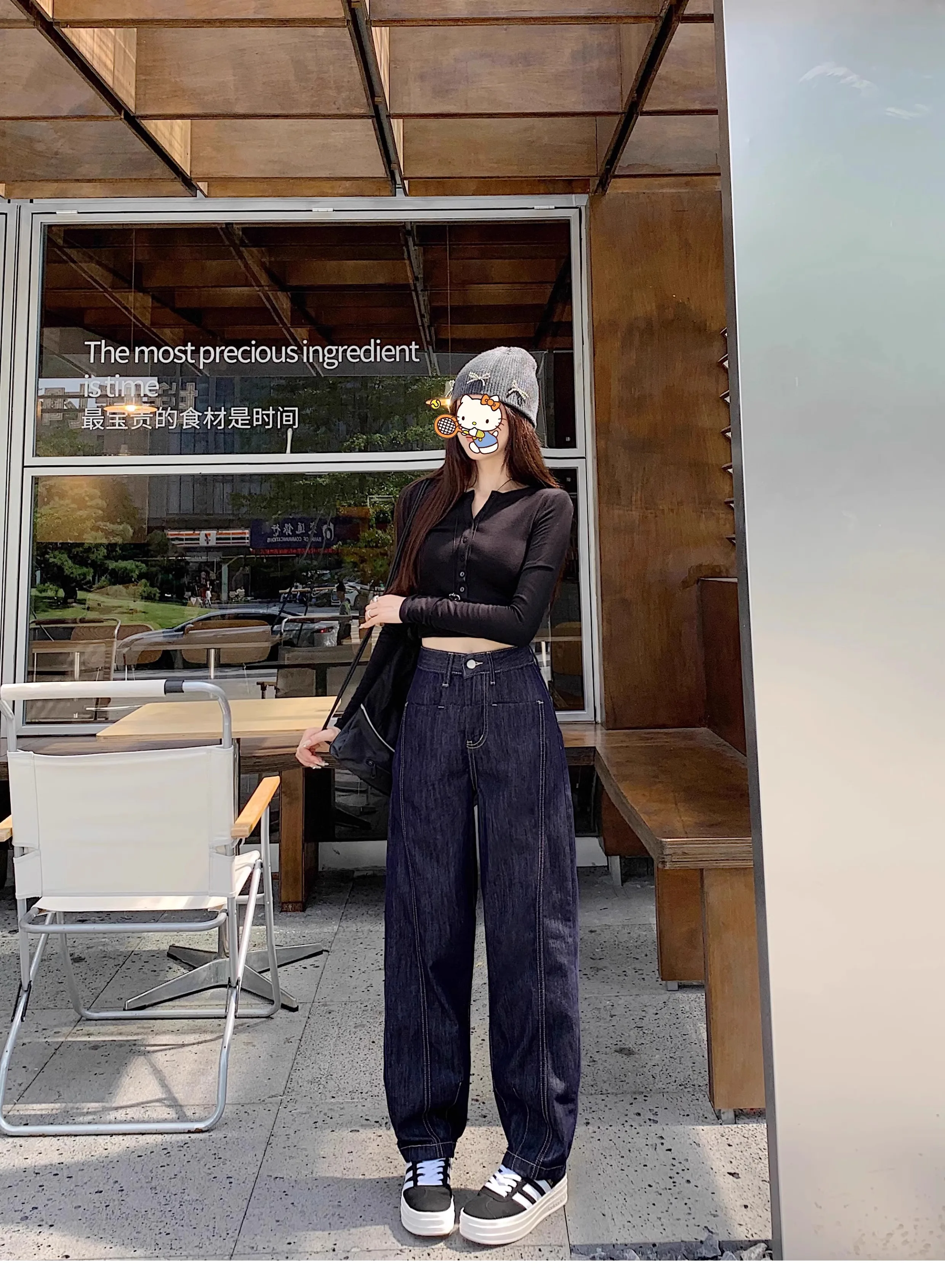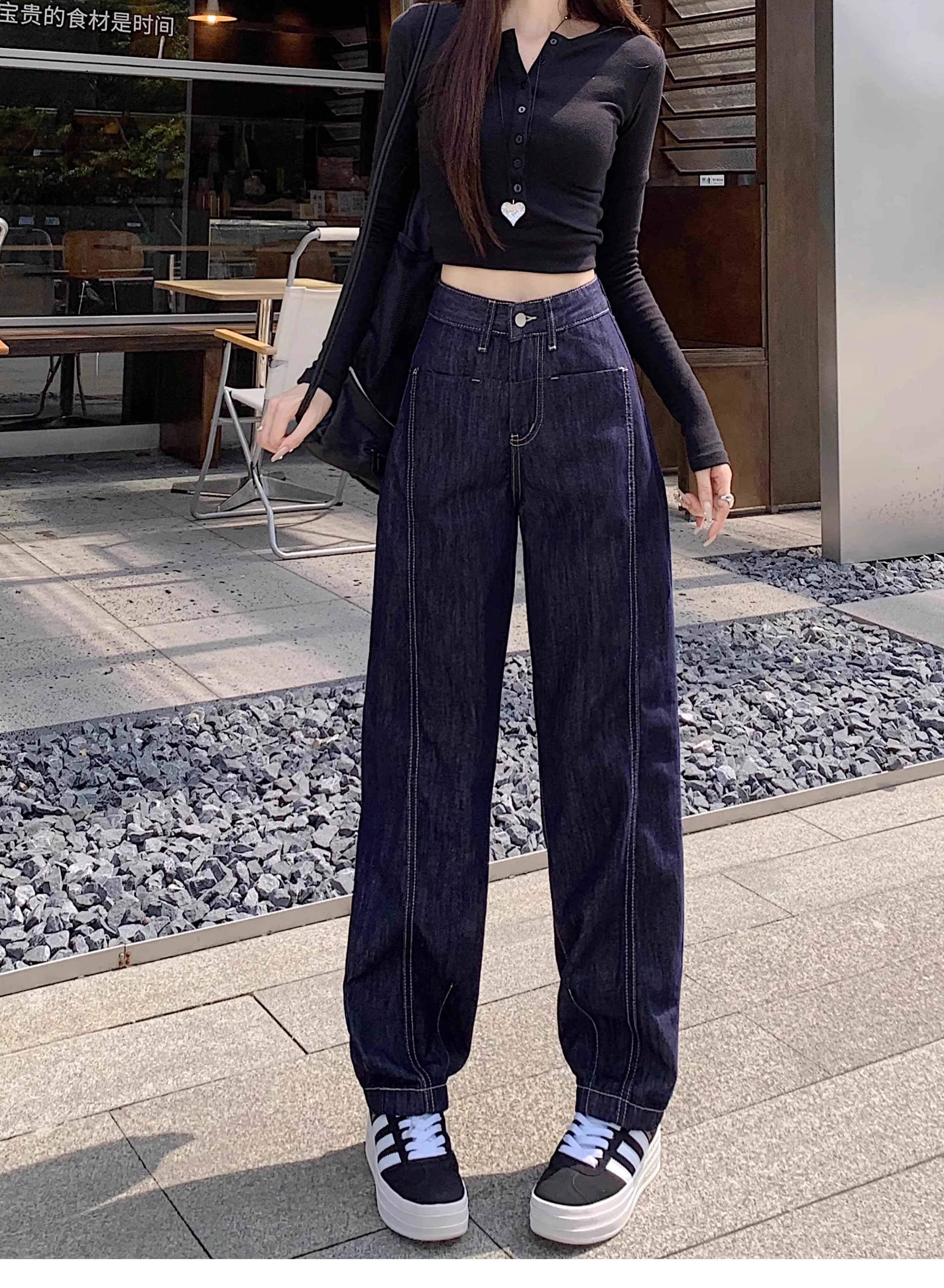 Color: Blue, Size: XL - Retro wide leg jeans women's 2025 new high waist small figure chubby girl versatile four seasons slimming straight leg pants
