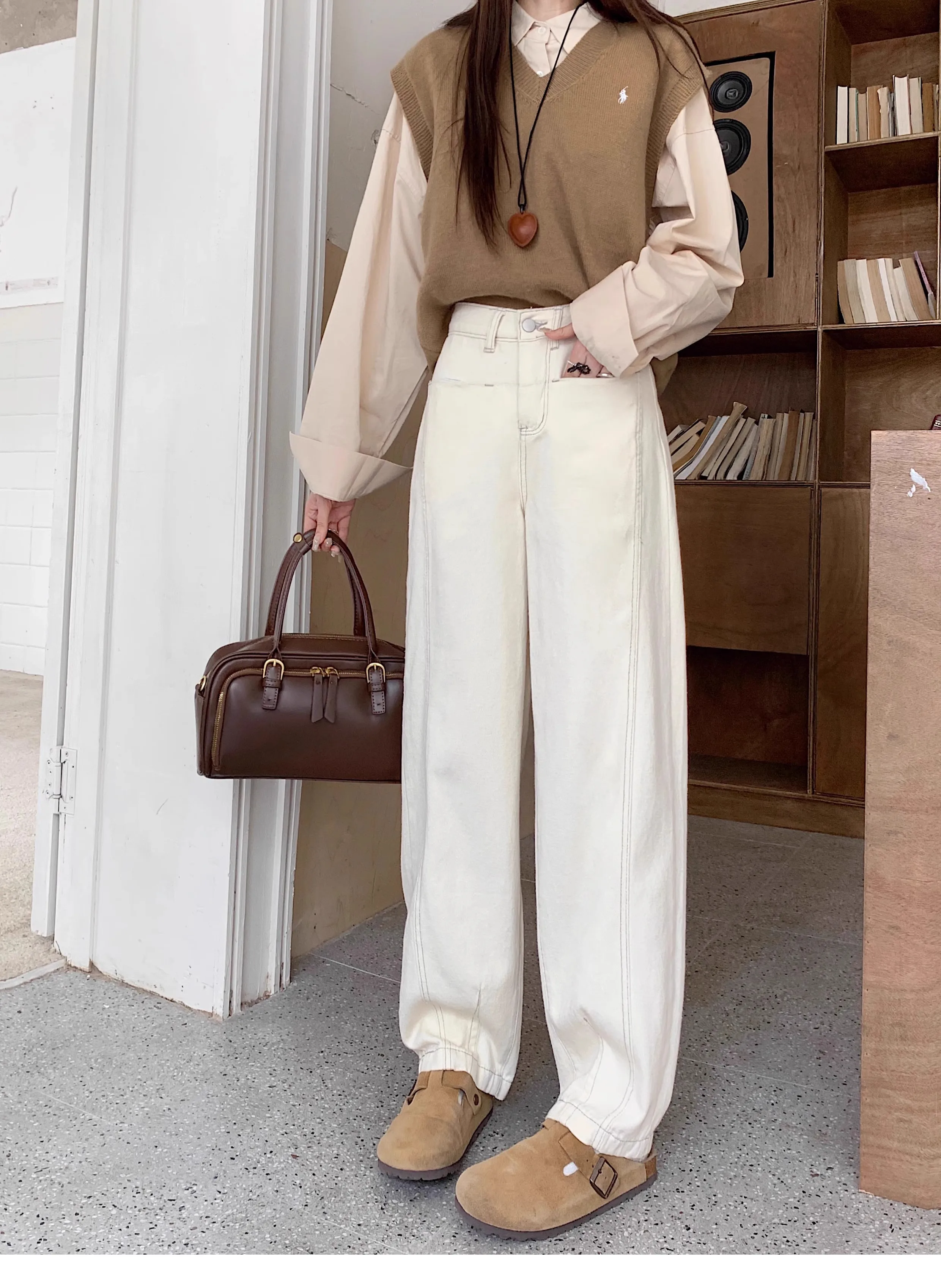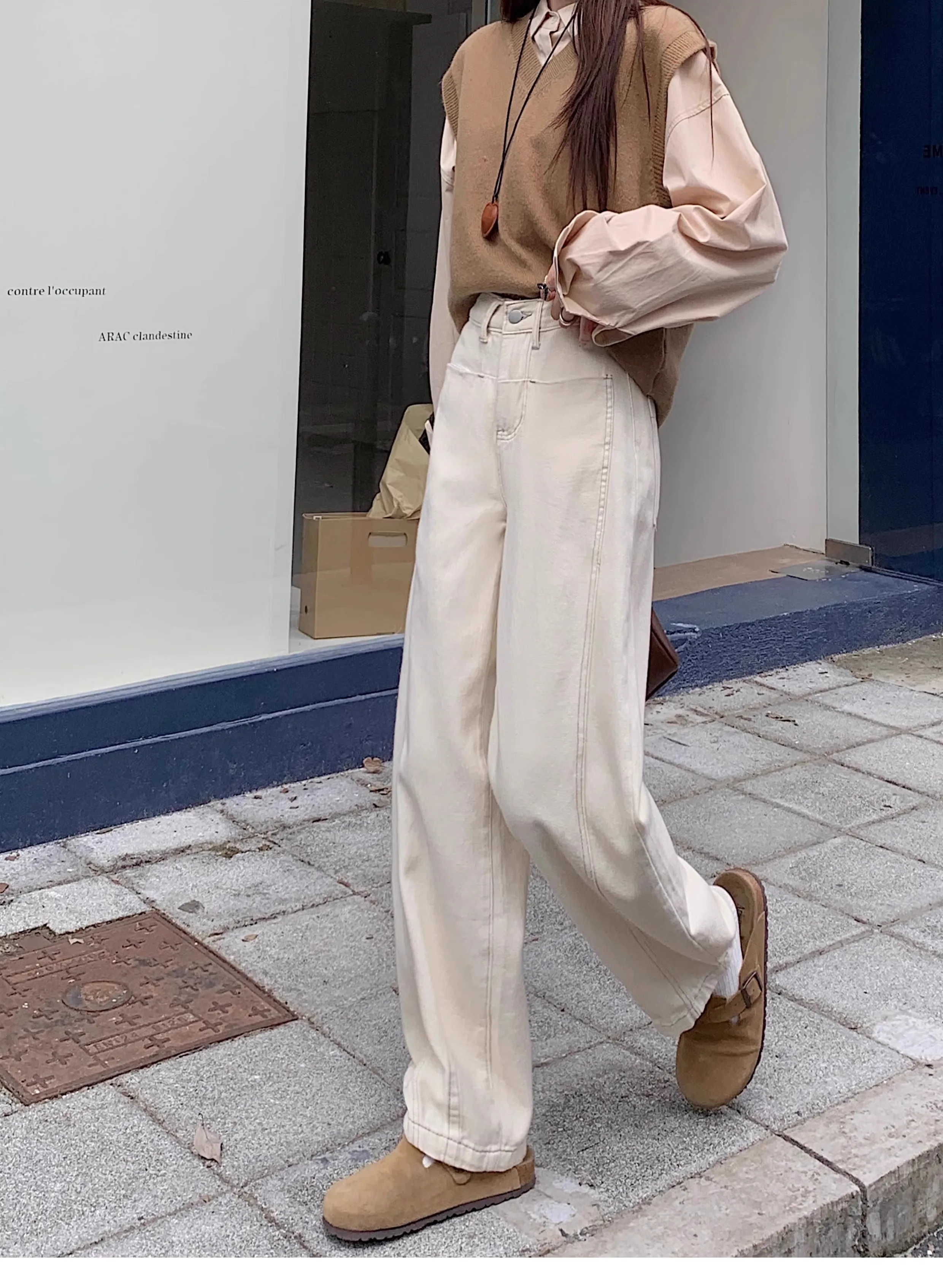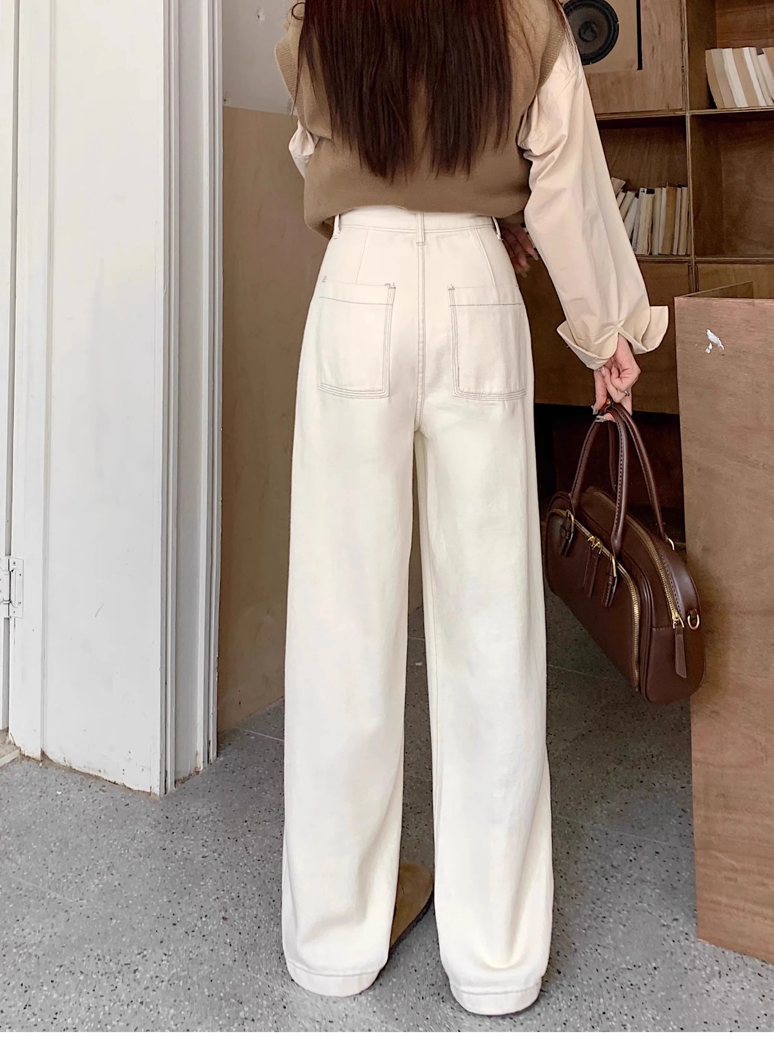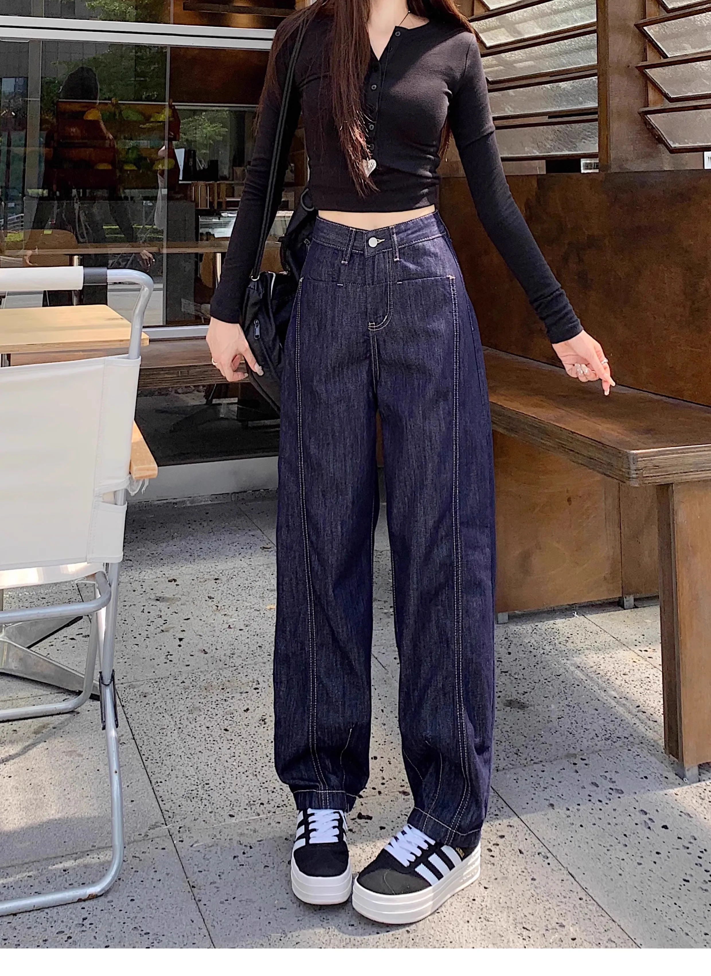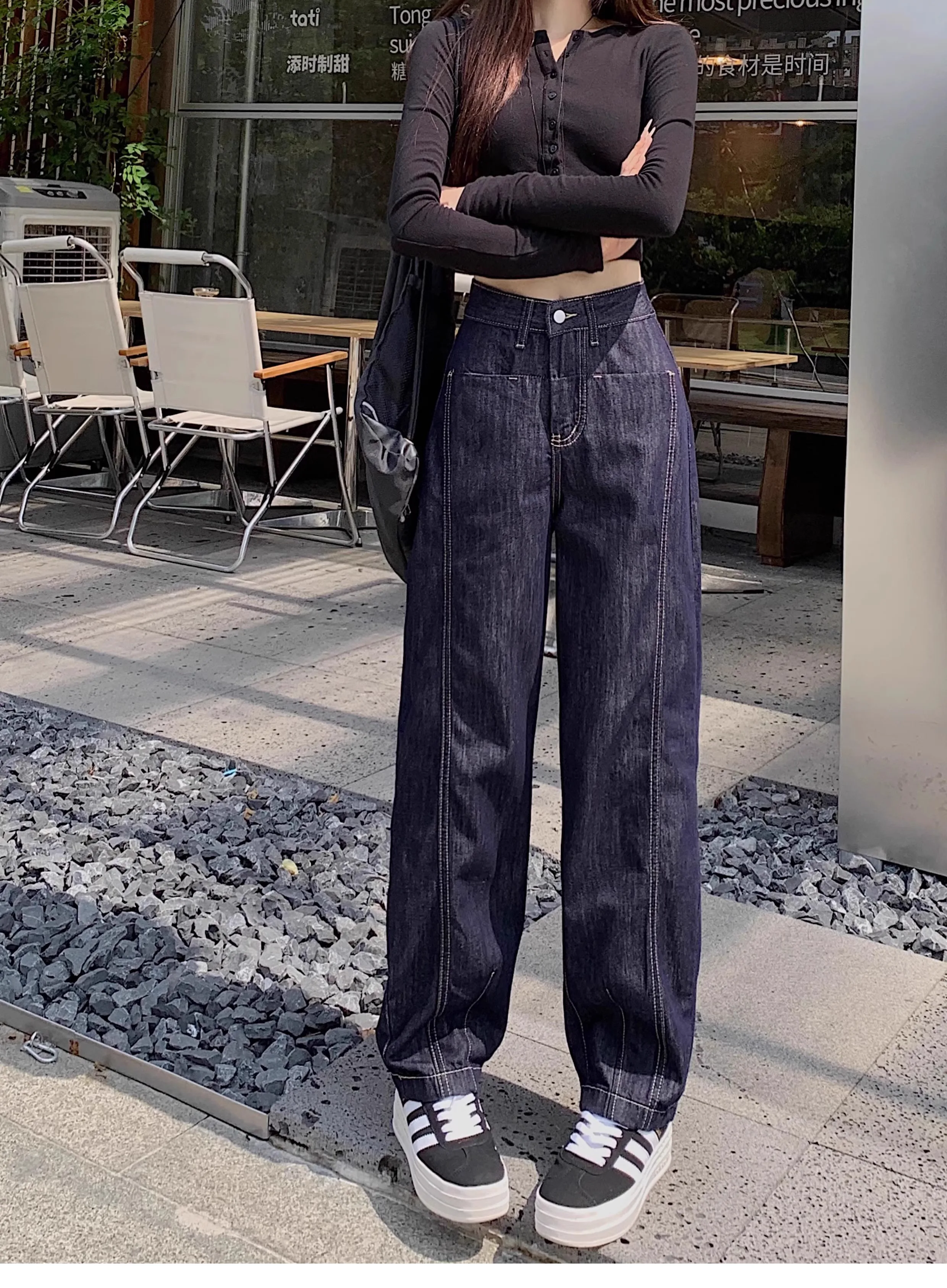 Color: Blue, Size: XL - Retro wide leg jeans women's 2025 new high waist small figure chubby girl versatile four seasons slimming straight leg pants