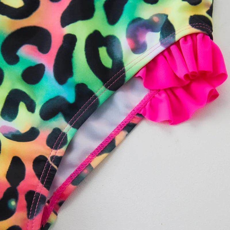 One-piece girls swimsuit, fish scales Designed with a cute ruffle hips.