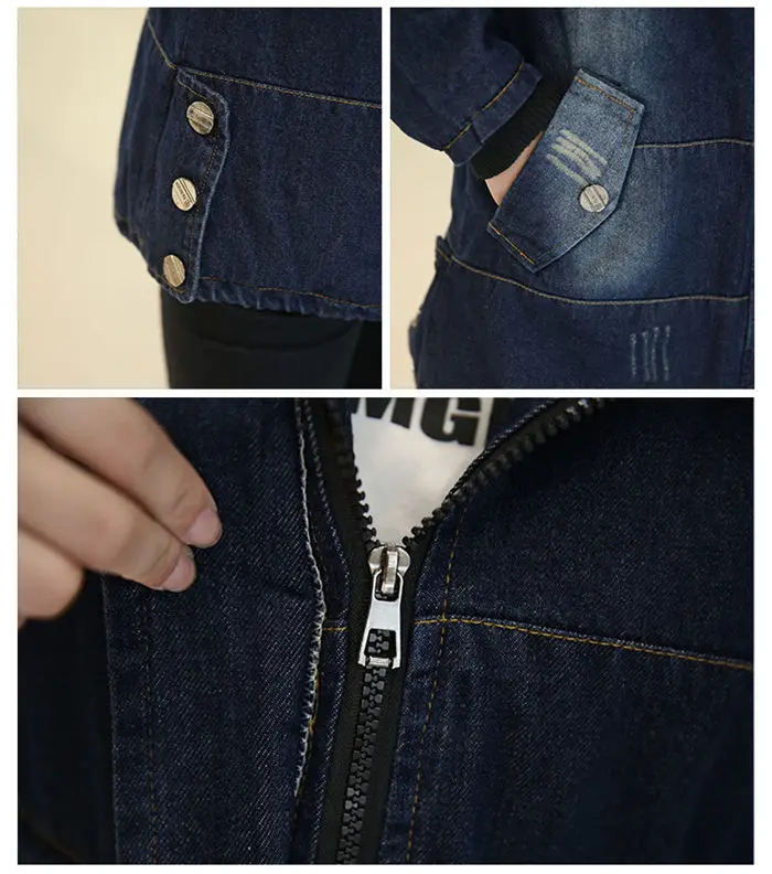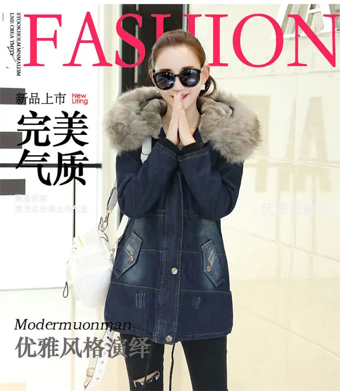 Color: Blue, Size: XXL - 2019 New Plus Velvet Padded Coat Women Winter Denim Jacket With Large Fur Collar Denim Jacket Hooded Warm Cotton Clothing f1911