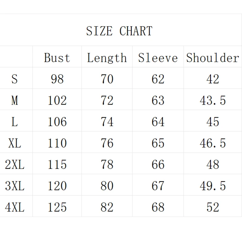 size_info: {"sizeInfoList":[{"length":{"cm":"98","inch":"38.58"},"size":"S","vid":-3},{"length":{"cm":"102","inch":"40.16"},"size":"M","vid":-4},{"length":{"cm":"106","inch":"41.73"},"size":"L","vid":-5},{"length":{"cm":"110","inch":"43.31"},"size":"XL","vid":-6},{"length":{"cm":"115","inch":"45.28"},"size":"XXL","vid":-7},{"length":{"cm":"120","inch":"47.24"},"size":"XXXL","vid":-8},{"length":{"cm":"125","inch":"49.21"},"size":"4XL","vid":-9}]}