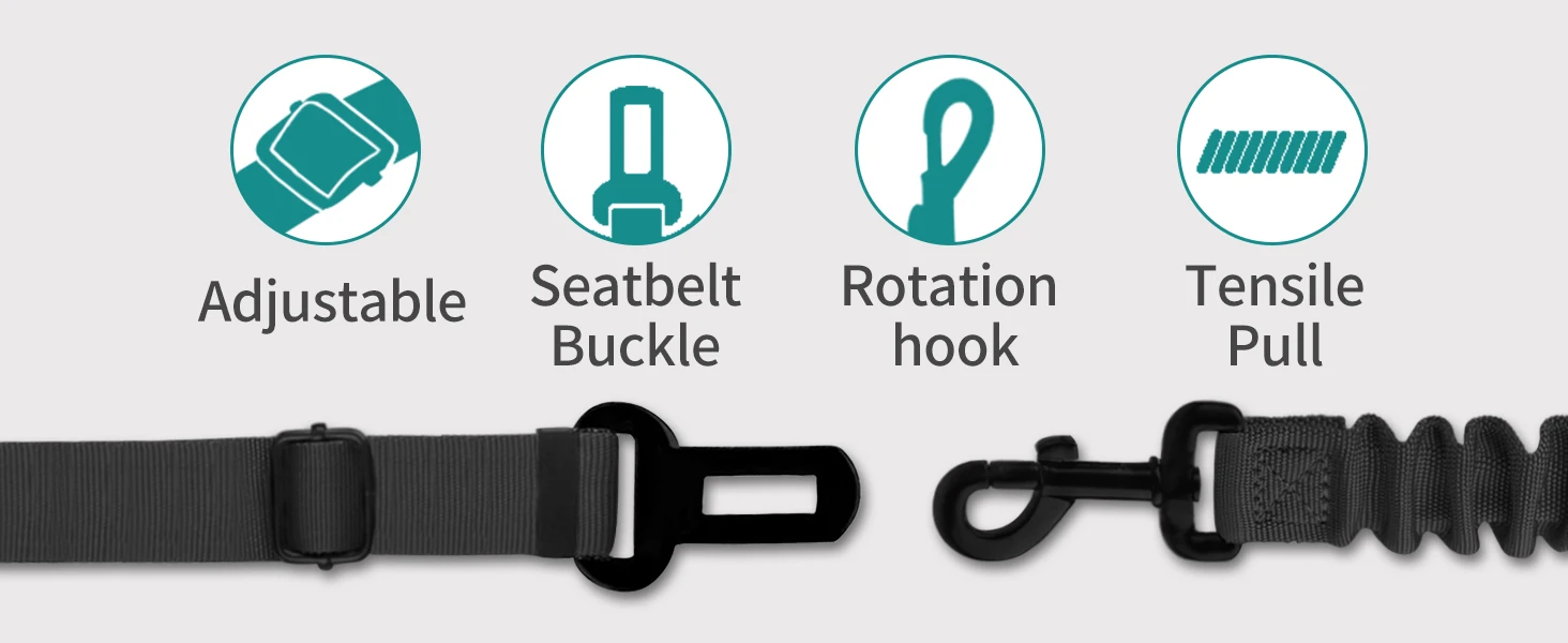 【ELASTIC BUFFER DESIGN】 With elastic buffer design, dog seat belt used with dog harness (not provided) can protect dogs from sudden brake or sharp turns, preventing driver from distracted driving.