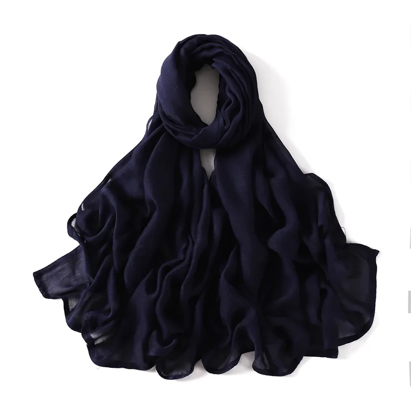 Color: Blue - Women Big Size Plain Solid Cotton Rayon Hijab Scarf Lady High Quality Wraps and Shawls Musulman Headband Islamic Turban 180*95Cm