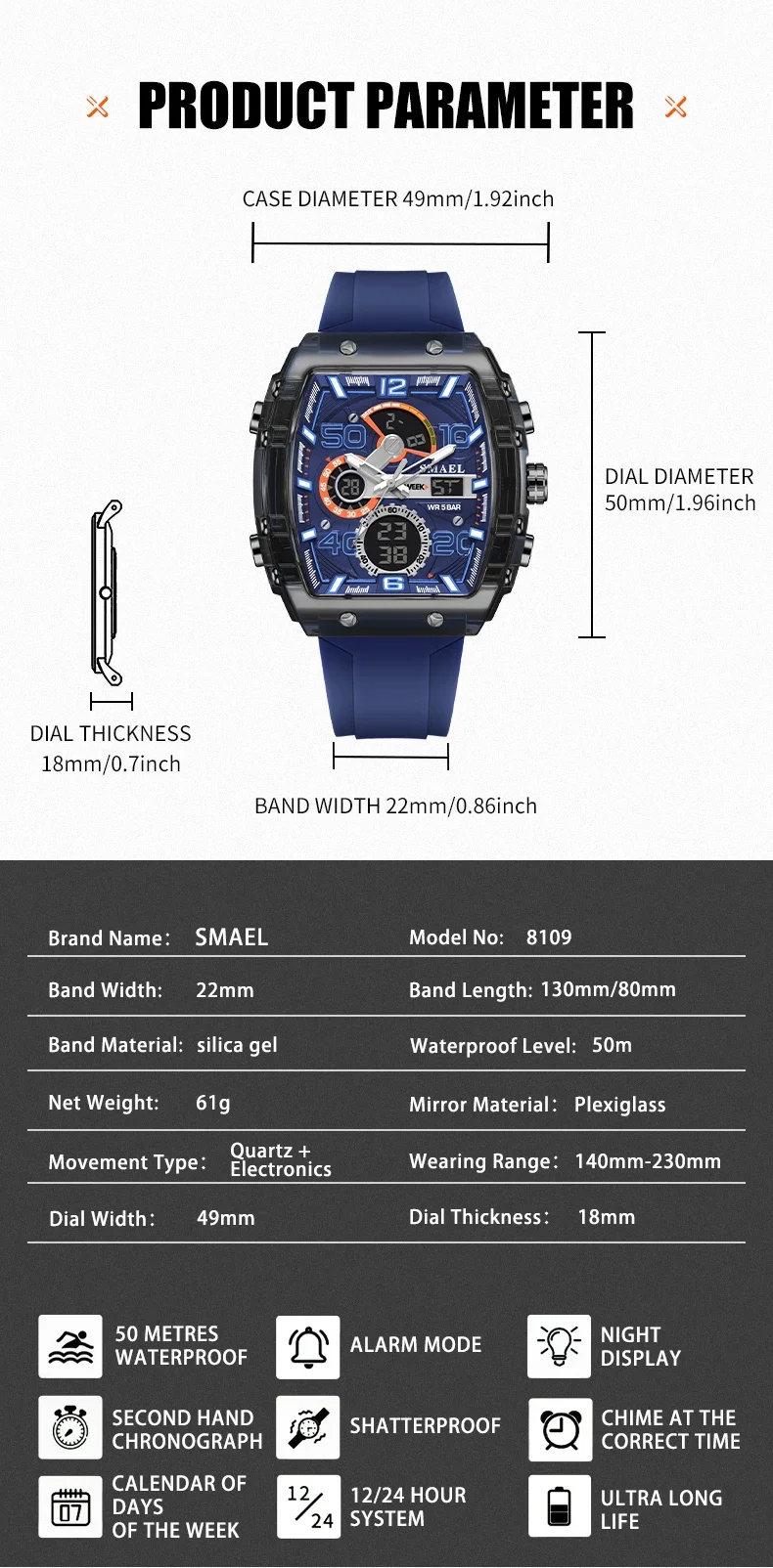 Color: BRONZE - SMAEL 8109 New Men's Watch Multifunctional Sports 50M Waterproof Dual Display LED Night Light Leisure Student Electronic Watch
