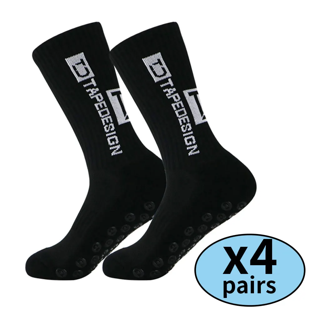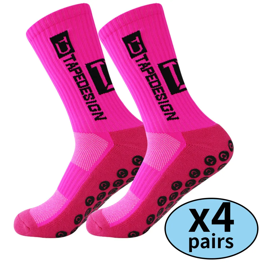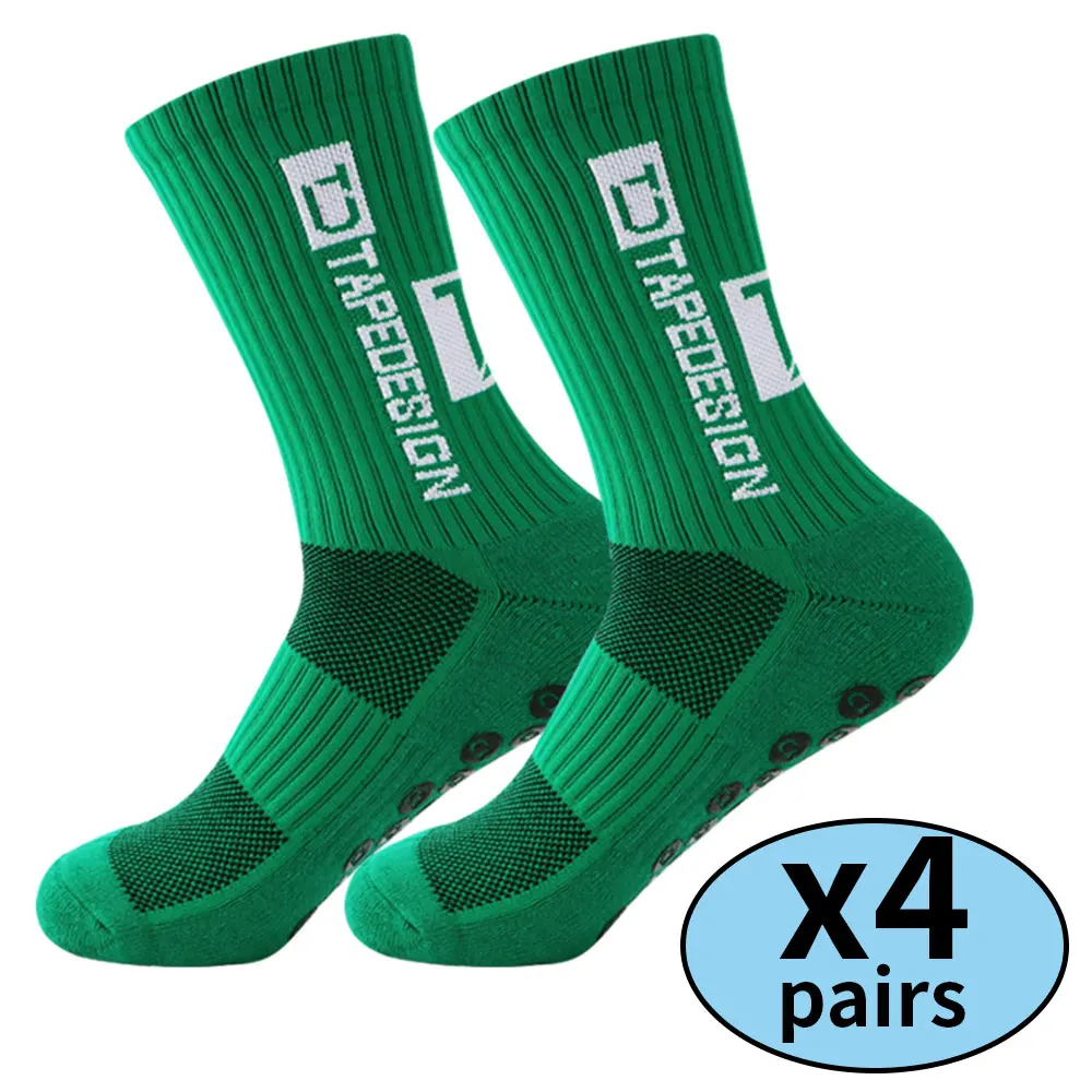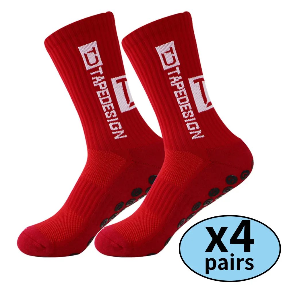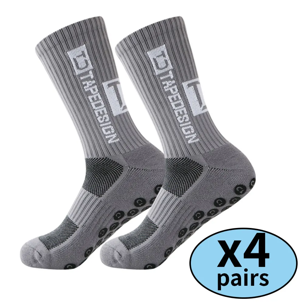 Color: Brown - 4 pairs of new non slip football socks, basketball socks, yoga socks, sports socks, outdoor sports socks