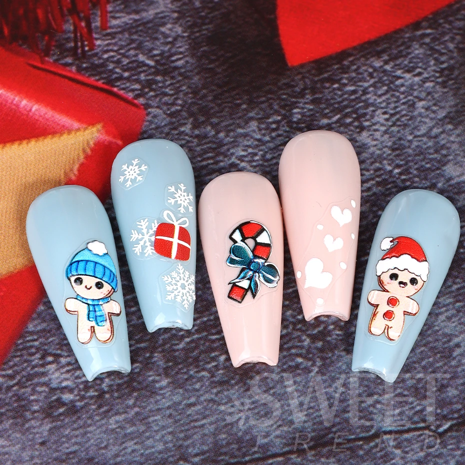 5D Embossed Elk Nail Art Sticker Cute Christmas Winter Santa Claus Snowflake Gingerbread Man Engraved Slider Manicure Decoration