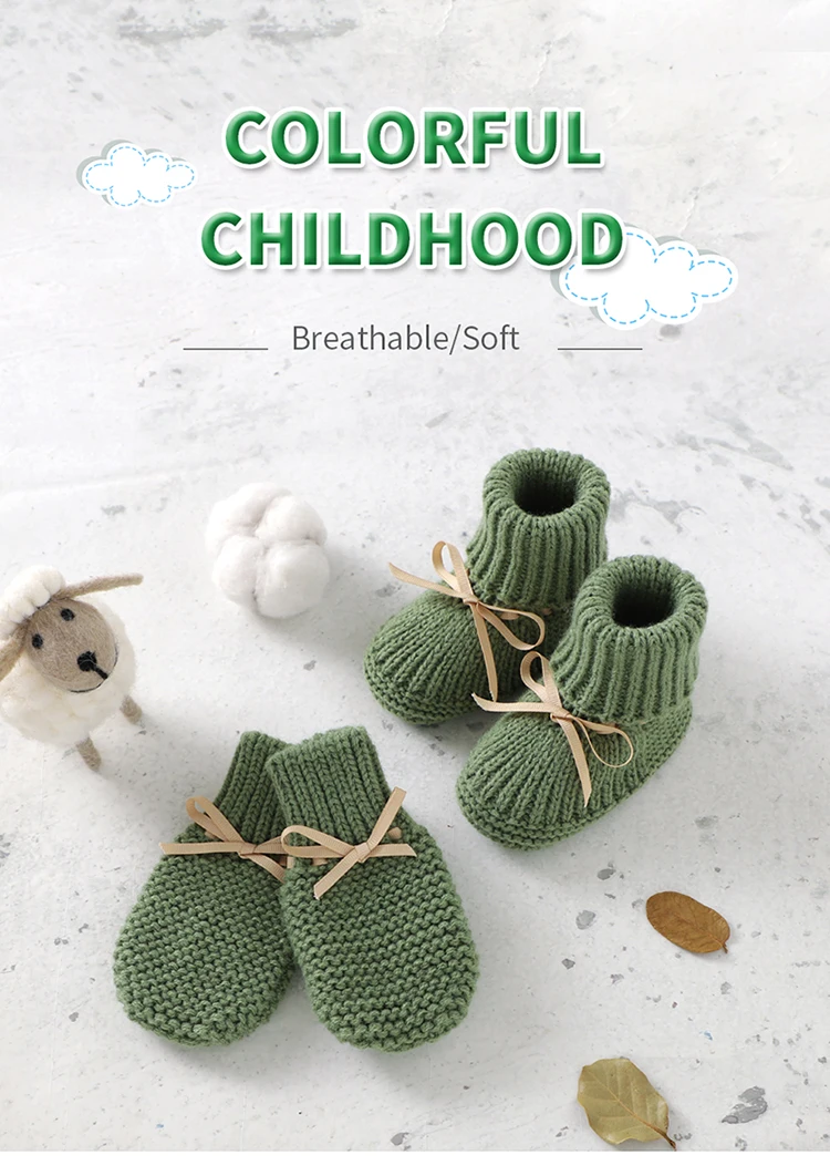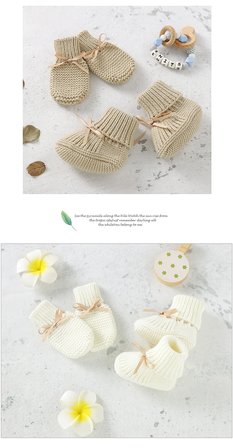 Color: Brown, Baby Age: 7-12 Months - Baby Shoes + Gloves Set Knit Newborn Girls Boys Boots Mitten Fashion Butterfly-knot Toddler Infant Slip-On Bed Shoes Hand Made