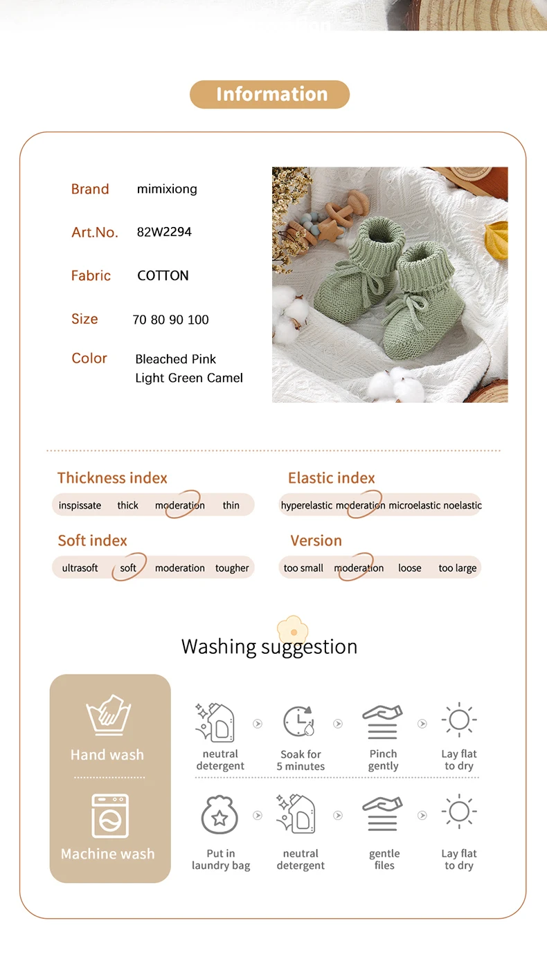 Color: Brown, Baby Age: 7-12 Months - Infant Baby Shoes Knit Cotton Boys Girl Boots Fashion Tie Solid Newborn Walk Bed Footwear Toddler Kid Clothing Accessories 0-18M