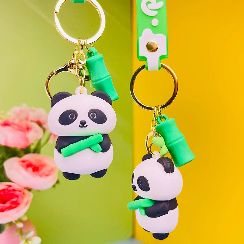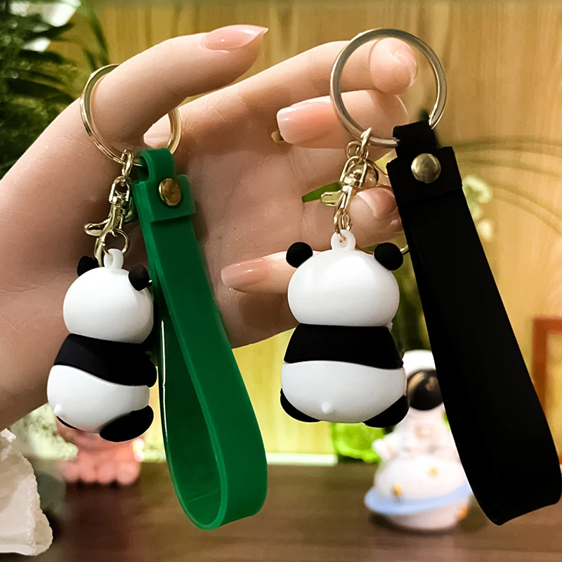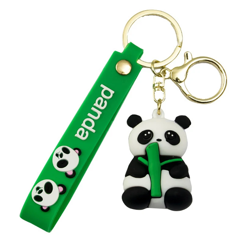 Color: Brown - Cartoon Panda Keychain Silicone Animal Doll Pendant Keyring For Women Men Bag Charms Car Key Holder Accessories Couple Gift