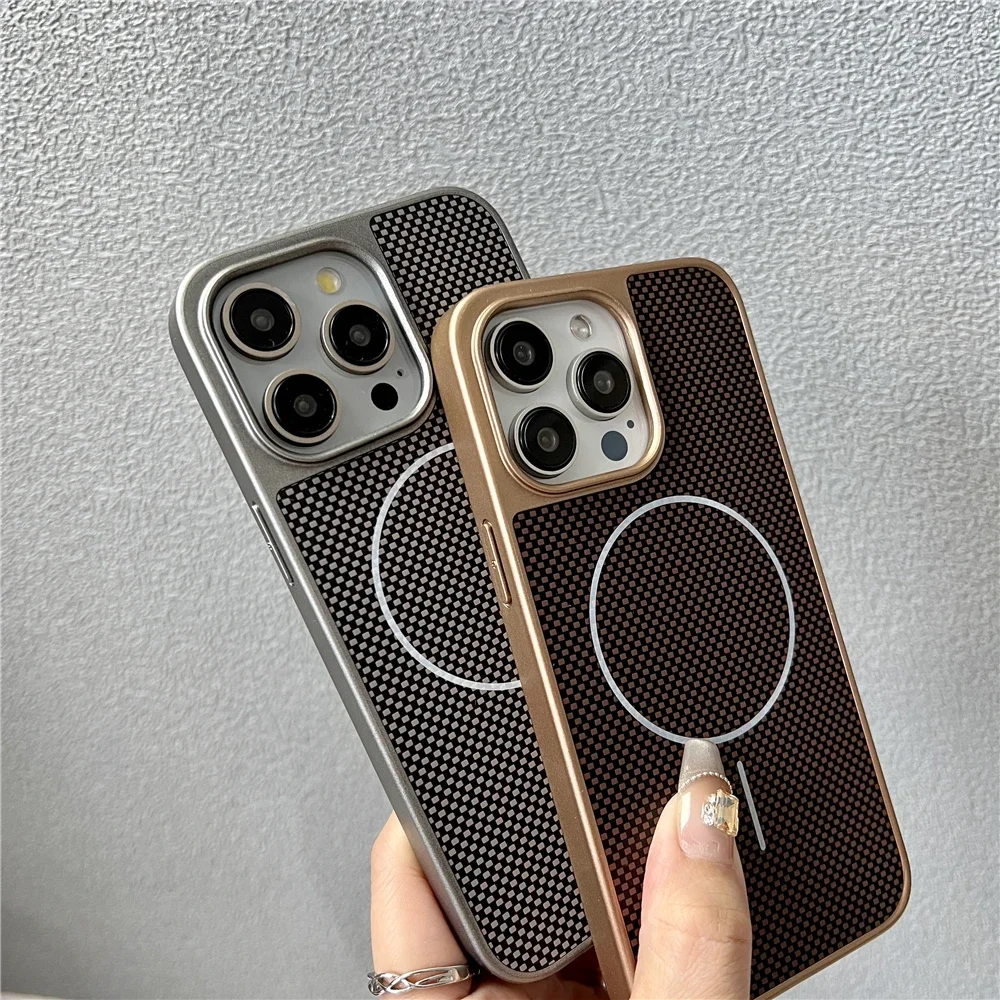 Carbon Fiber Textured Magnetic Phone Case For iPhone 16 Pro Max 15 14 13 12 Shockproof Soft Cover For Magsafe Wireless Charging