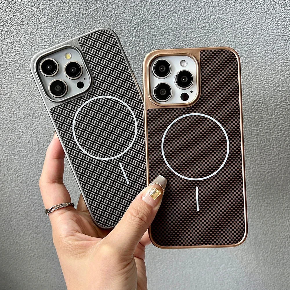 Color: Brown, Compatible-Phone Models: For iPhone 13 - Carbon Fiber Textured Magnetic Phone Case For iPhone 16 Pro Max 15 14 13 12 Shockproof Soft Cover For Magsafe Wireless Charging