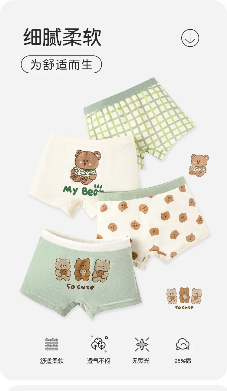 Color: Brown, Kid Size: 2T - Kids Boys Underwear Spring Newest Baby Underpants Children 4pcs Cotton Briefs Boys Boxer Shorts Baby Underwear