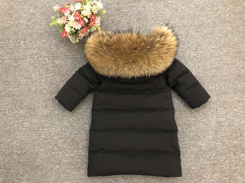 Color: Brown, Kid Size: 3T - Children Girl boy Winter real fur thickened down jackets 90 down Long Coat jacket overcoat baby kids clothing -30 outwear ws1245