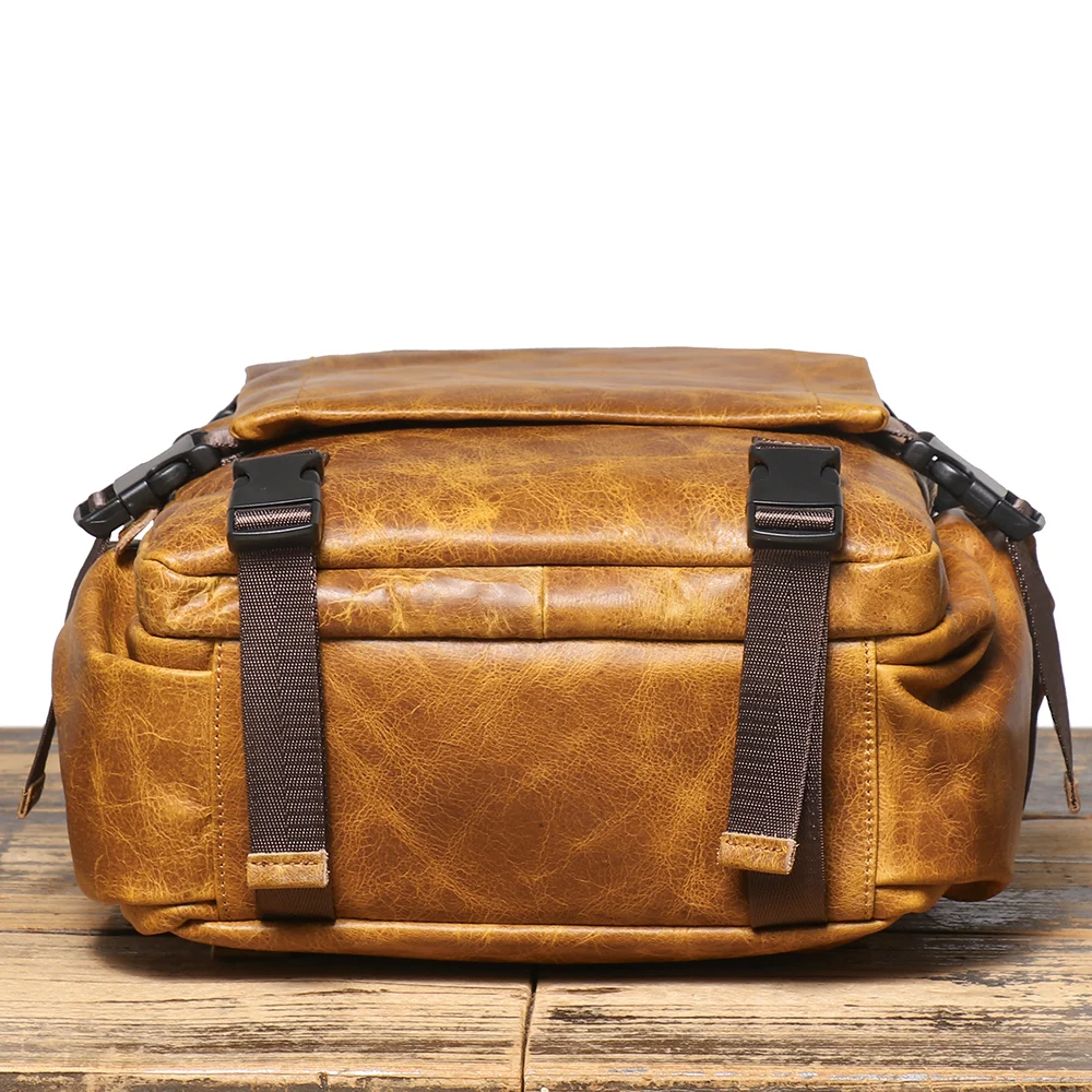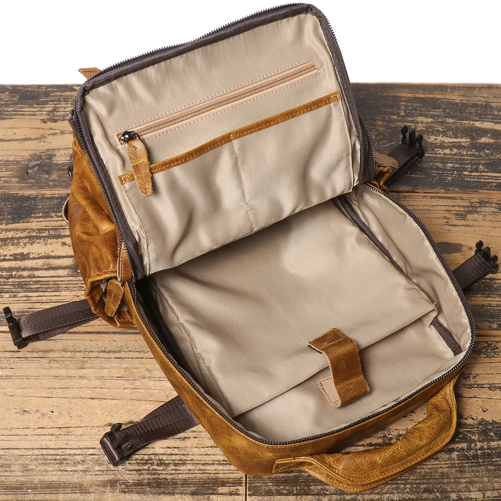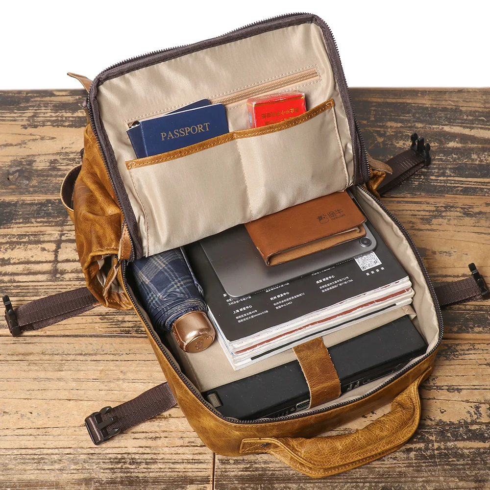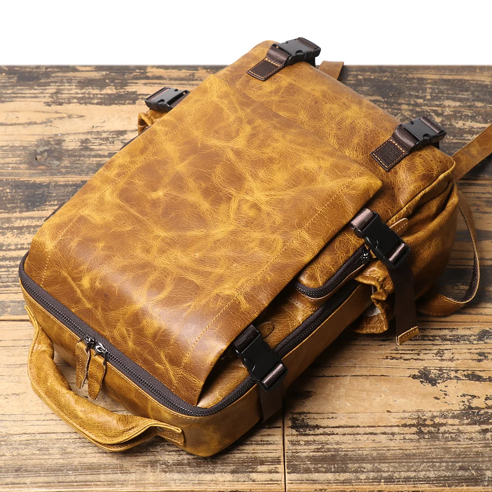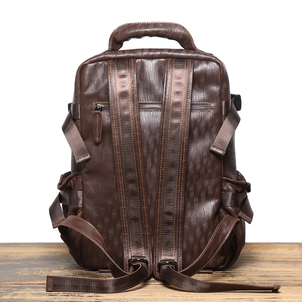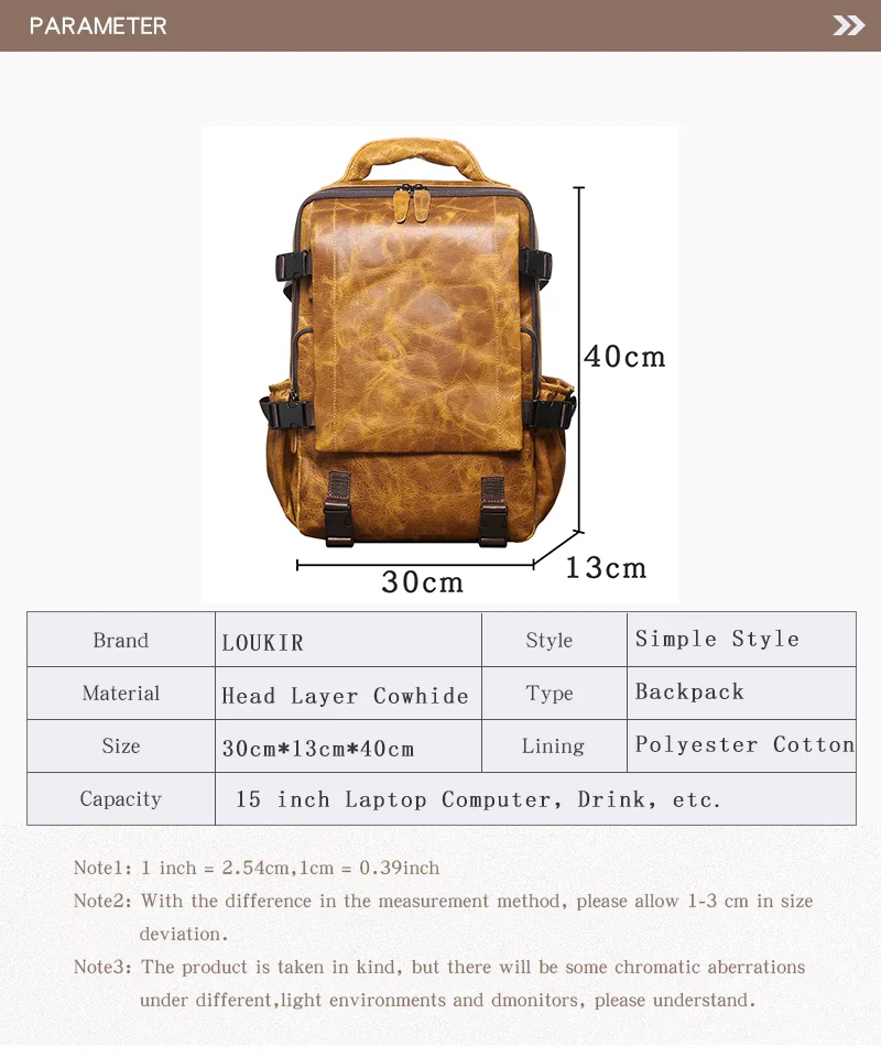 Color: Brown - LUOKIR New Men's Genuine Leather Travel Backpack Women's Cowhide School Bag Large Capacity Backpack Original Double Shoulder Bag