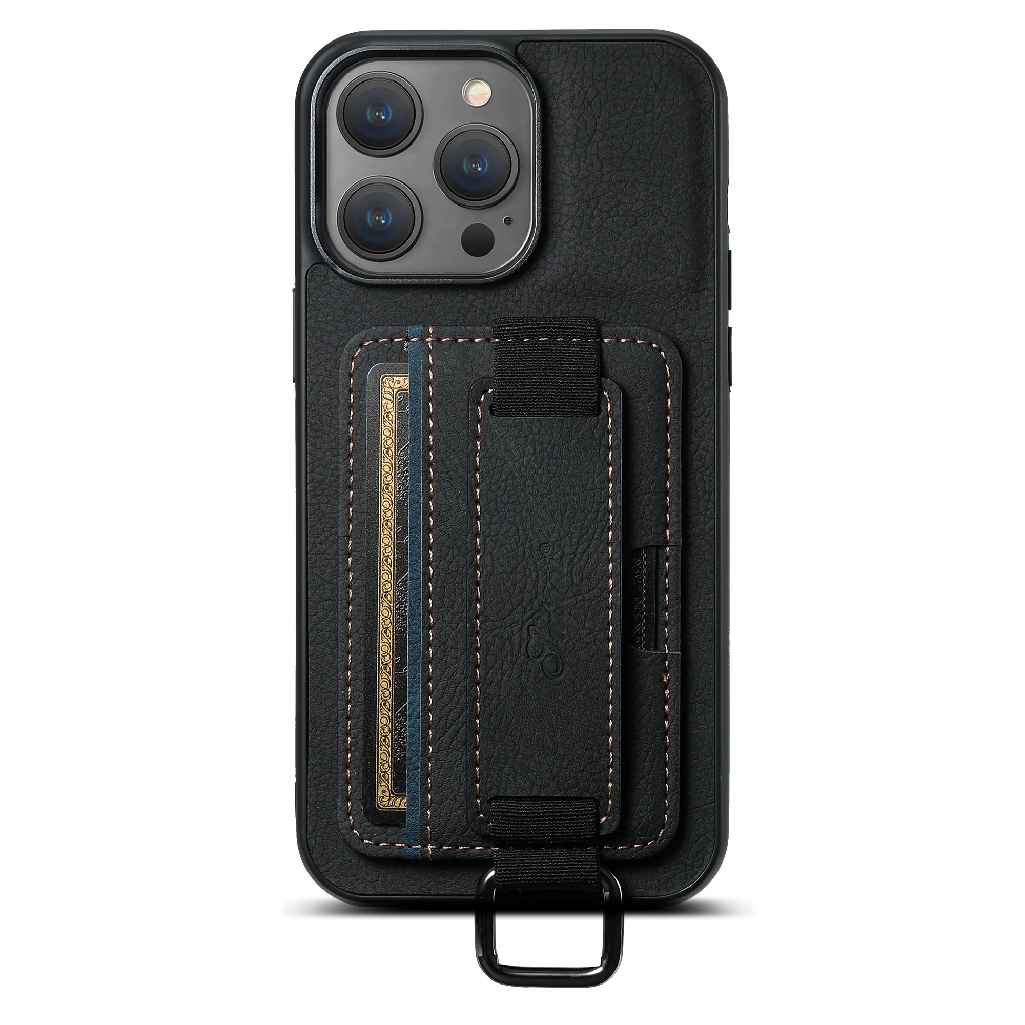 Color: Brown, Material: Carbon Fiber - SUTENI Lychee skin print wrist strap card phone case Card holder for iPhone 16 ProMax 15 Plus 14 13 12 11 XR XS Black/blue/brown