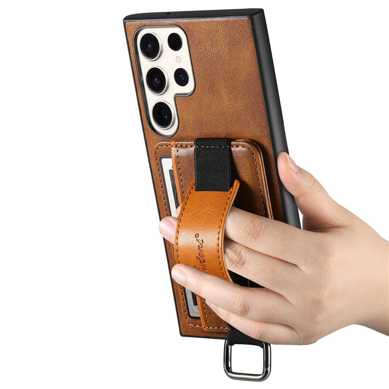 Color: Brown, Material: GENUINE LEATHER - Leather Wallet Phone Case For Samsung Galaxy S24 S23 S22 FE Ultra Plus A53 A54 A13 A14 A24 A34 Note20Ultra Card Holder Cover