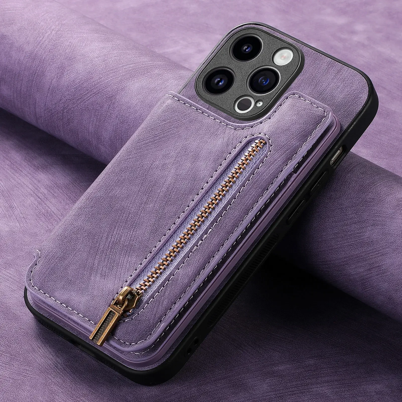 Zipper Wallet with Card Holder Phone Case for IPhone 15 14 11 Pro Max 13 12 Mini X XR XS Max 8 7 Plus Leather Shockproof Cover