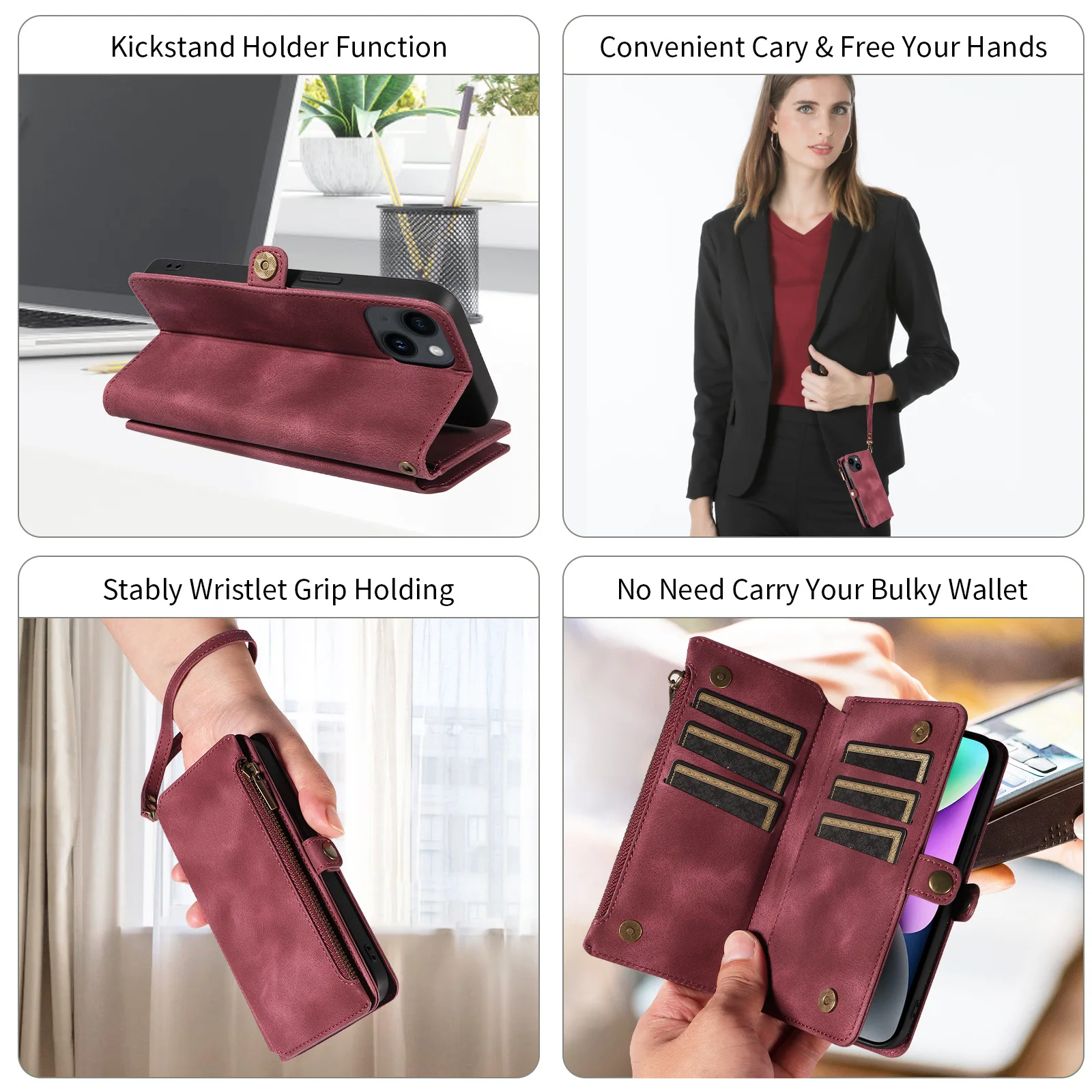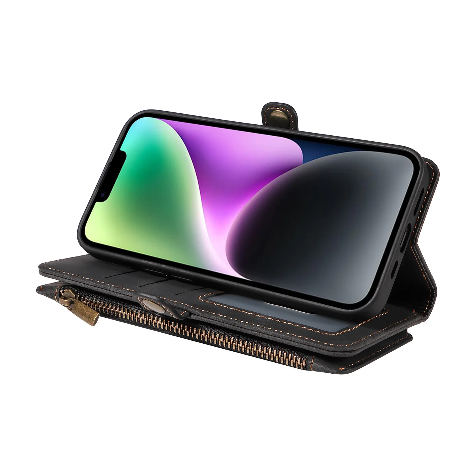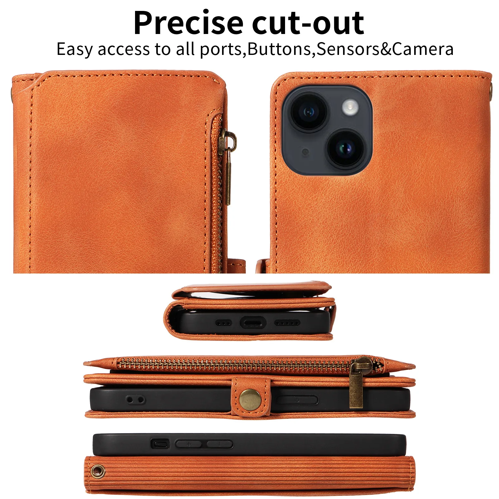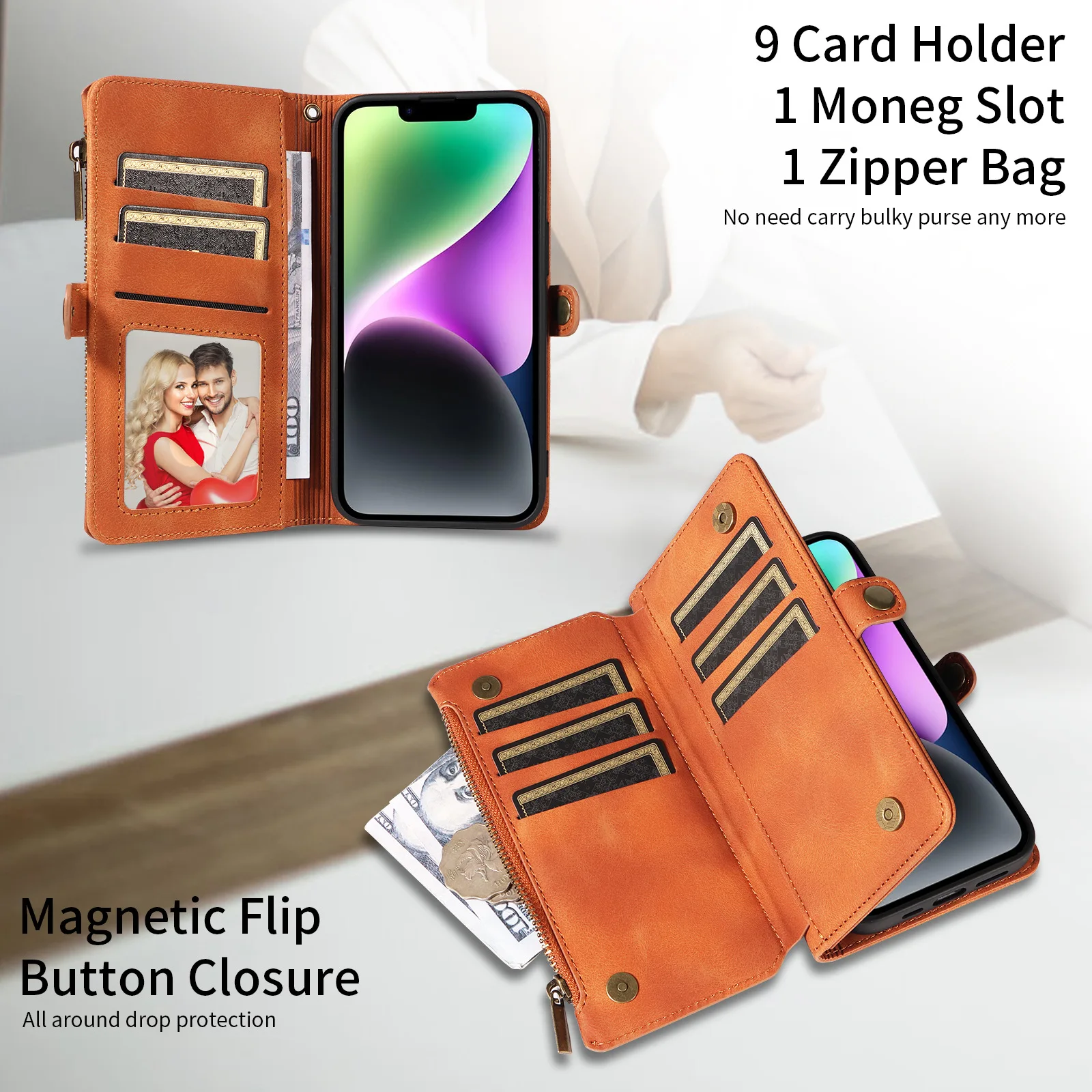 Feature 1: Zipper Wallet / flip case with 9 card slots + 1 cash slot+Zipper Pocket