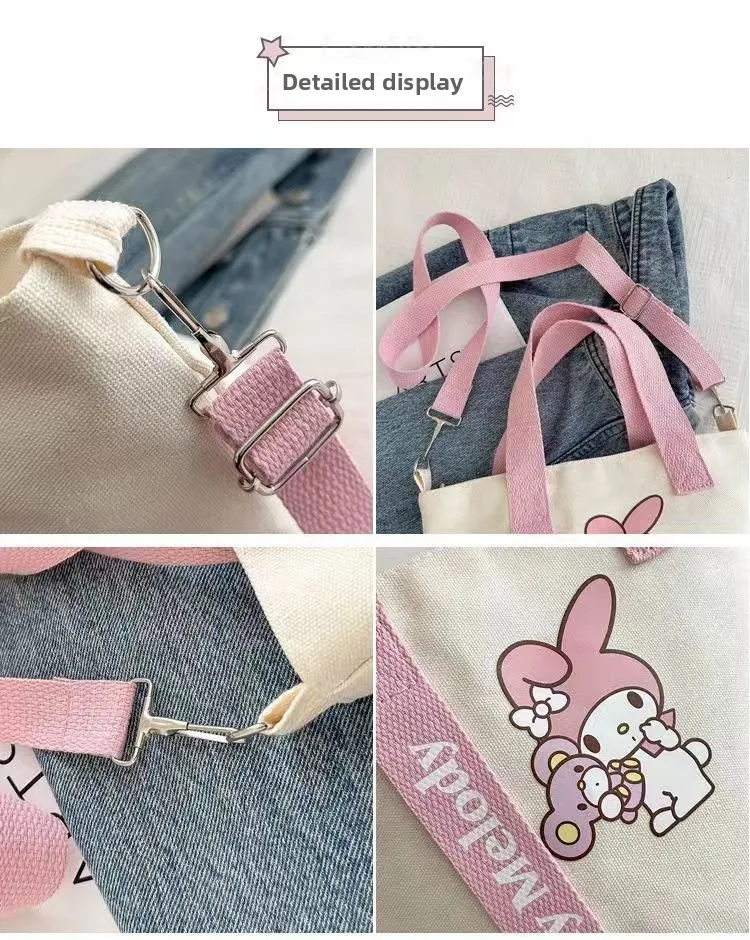 Color: Brown - Sanrio Hello Kitty Kuromi Canvas Shoulder Bag Kawaii Anime Print Lightweight Crossbody Purse for Girl