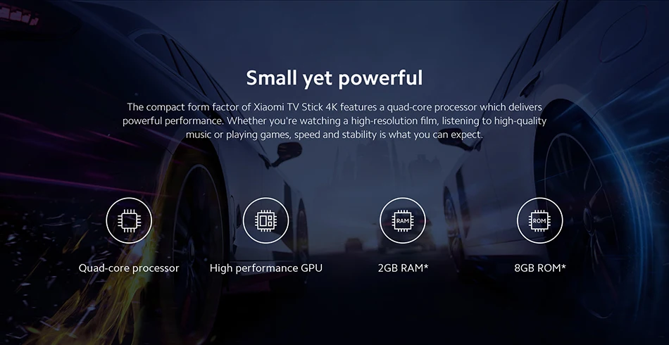 The compact form factor of Xiaomi TV Stick 4K features a quad-core processor which delivers powerful performance. Whether you're watching a high-resolution film, listening to high-quality music or playing games, speed and stability is what you can expect.