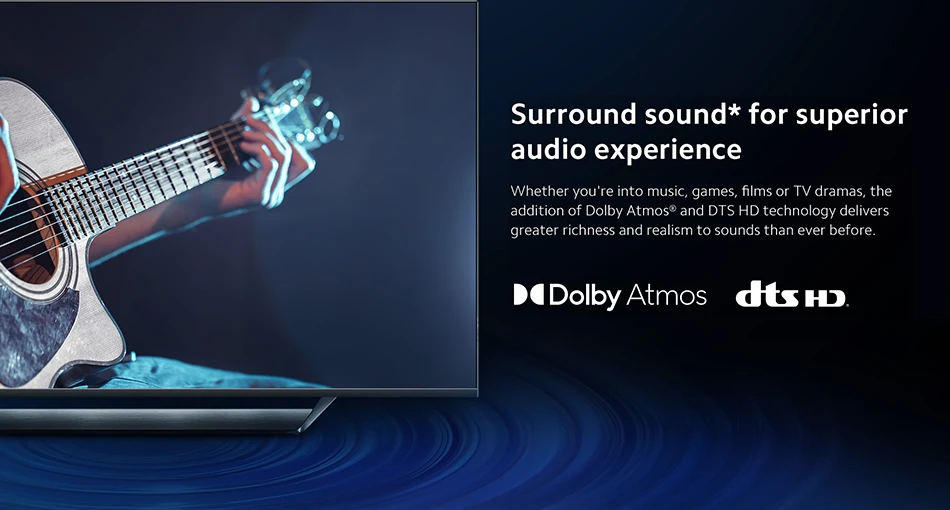 Whether you're into music, games, films or TV dramas, the addition of Dolby Atmos® and DTS HD technology delivers greater richness and realism to sounds than ever before.