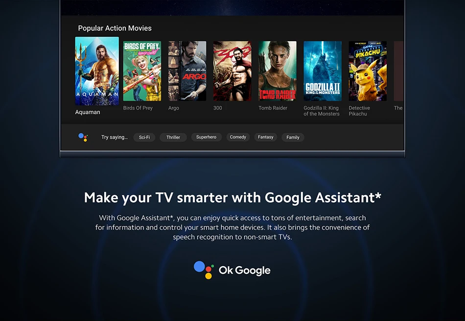 With Google Assistant*, you can enjoy quick access to tons of entertainment, search for information and control your smart home devices. It also brings the convenience of speech recognition to non-smart TVs.