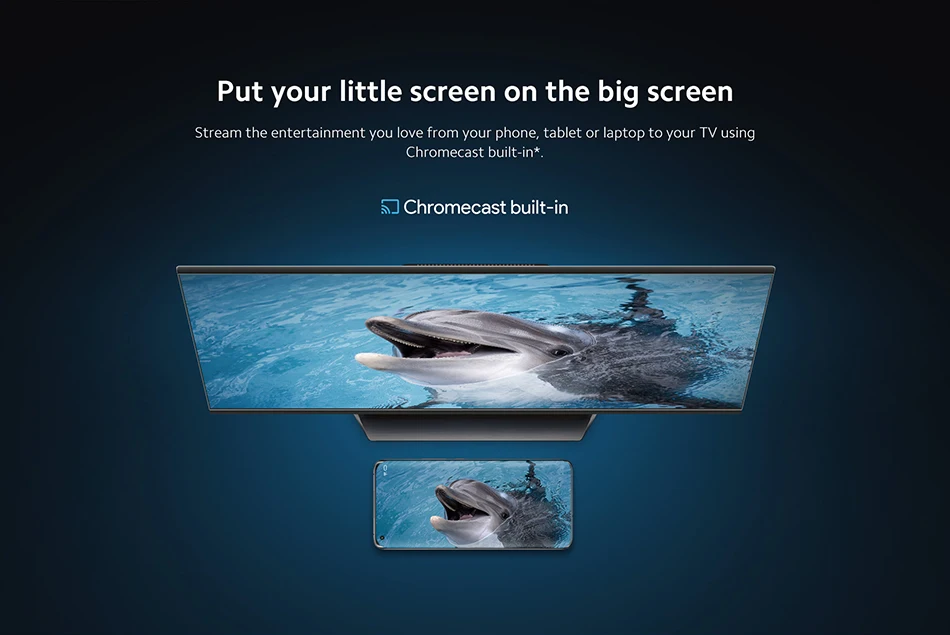 Stream the entertainment you love from your phone, tablet or laptop to your TV using Chromecast built-in*.
