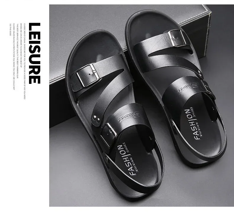 Color: Brown, Shoe Size: 44 - Men's Sandals Wholesale Summer Soft soled Anti slip Beach Shoes Men's Large New Casual Beach Outwear Sandals